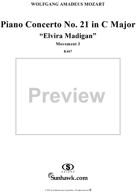 "Piano Concerto No. 21 in C Major ("Elvira Madigan"), Movement 3 (K467) - Full Score" Sheet Music by Wolfgang Amadeus Mozart