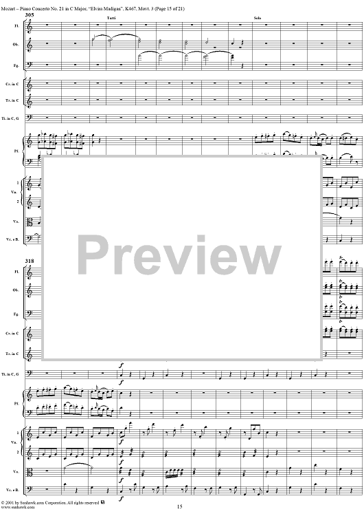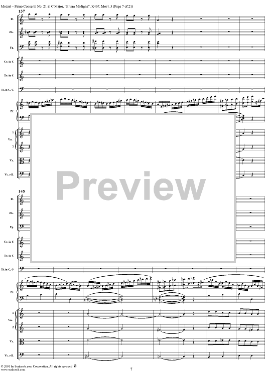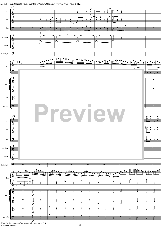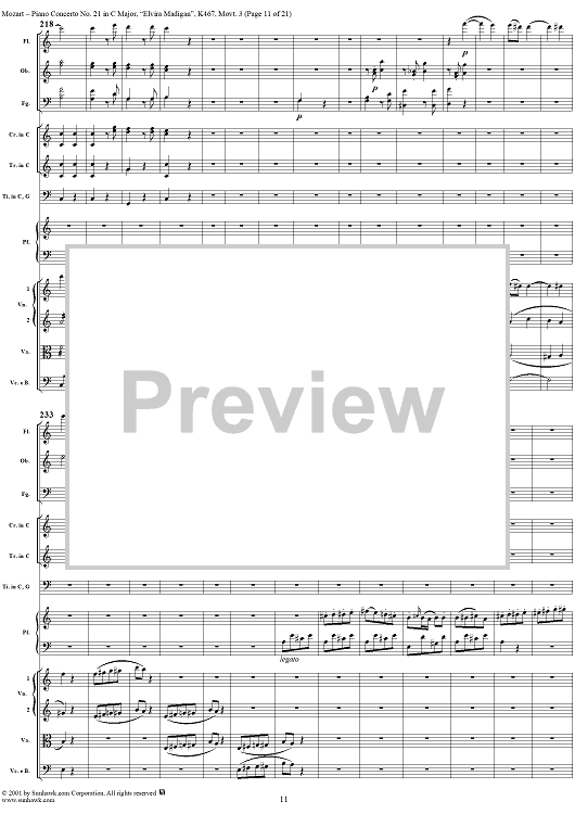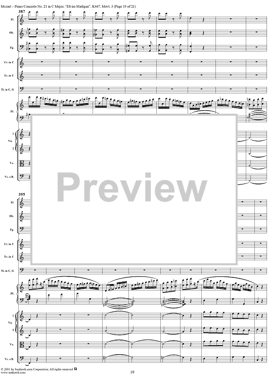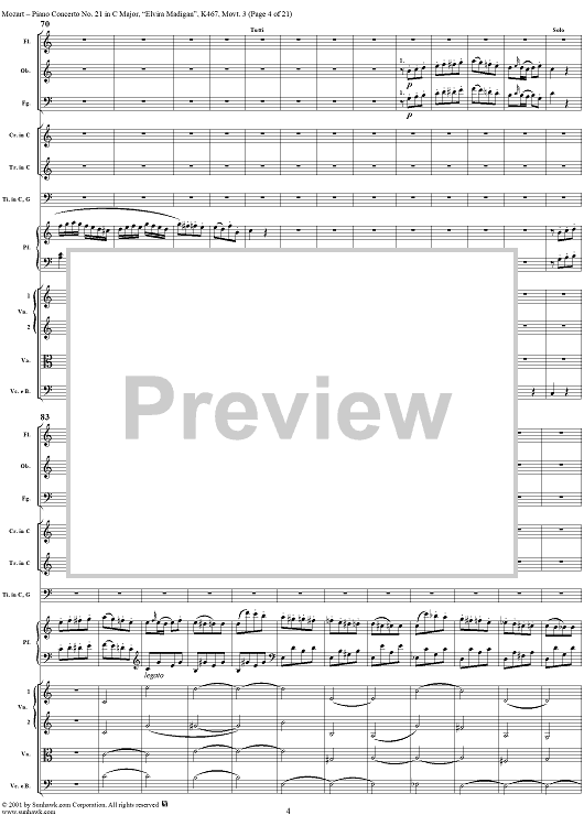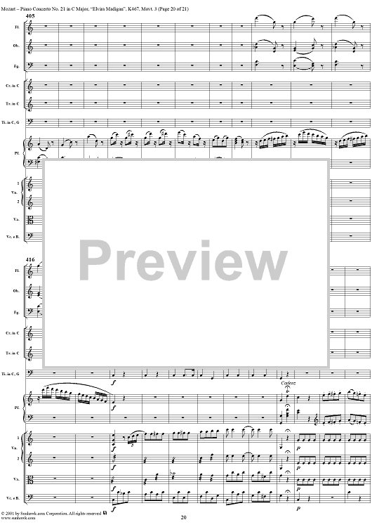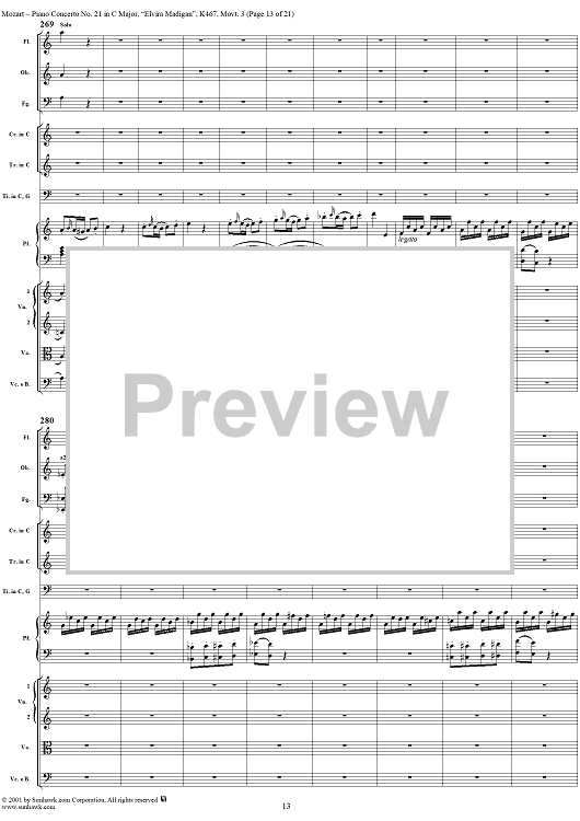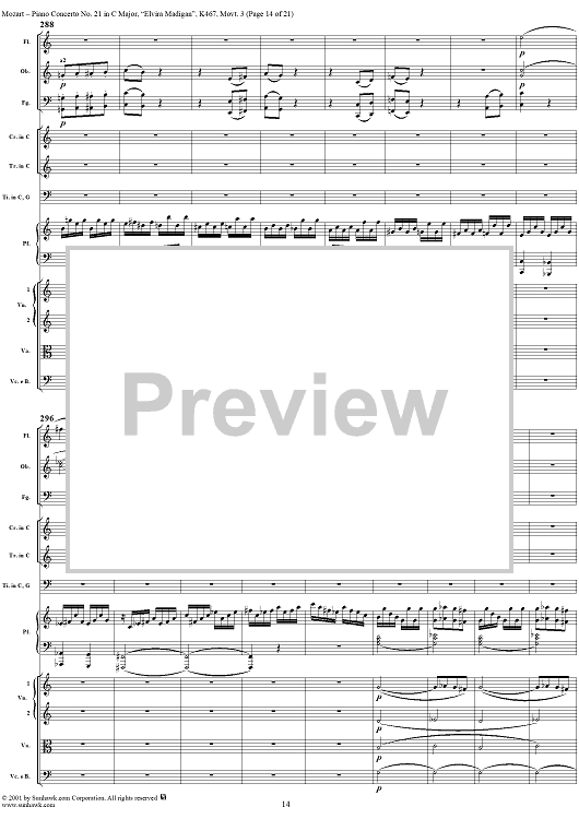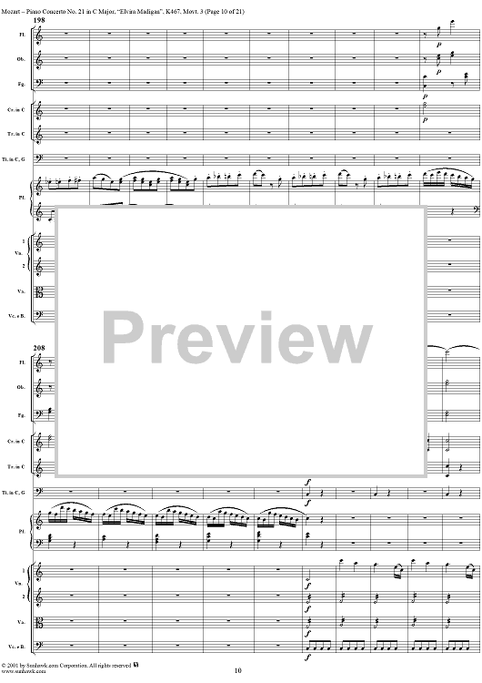 Digital Sheet Music for Piano Concerto No. 21 in C Major ("Elvira Madigan"), Movement 3 (K467) - Full Score by Wolfgang Amadeus Mozart scored for Piano and Orchestra; id:253197