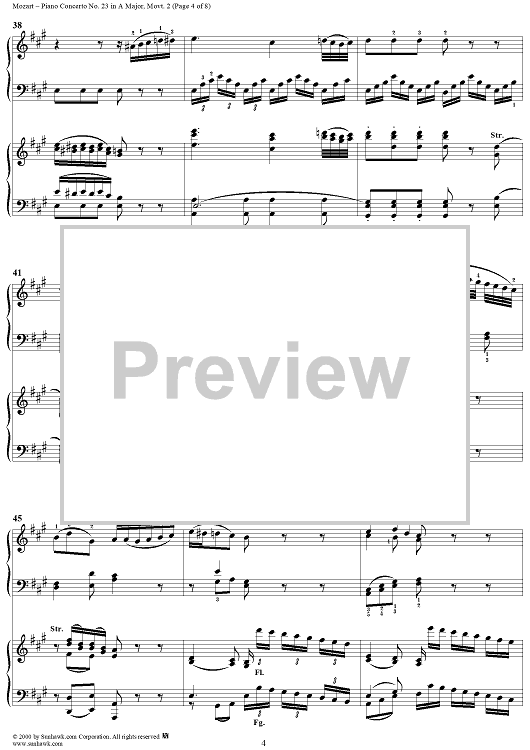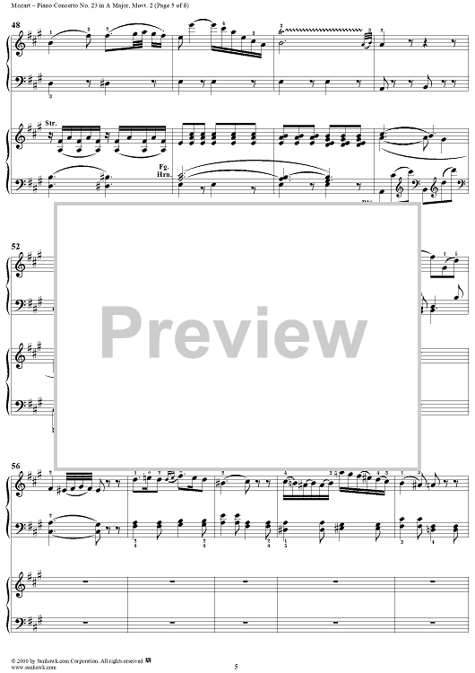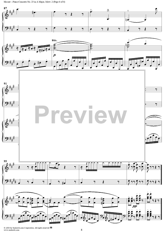 "Piano Concerto No. 23 in A Major movt. 2 - K.488 - Score" Sheet Music by Wolfgang Amadeus Mozart