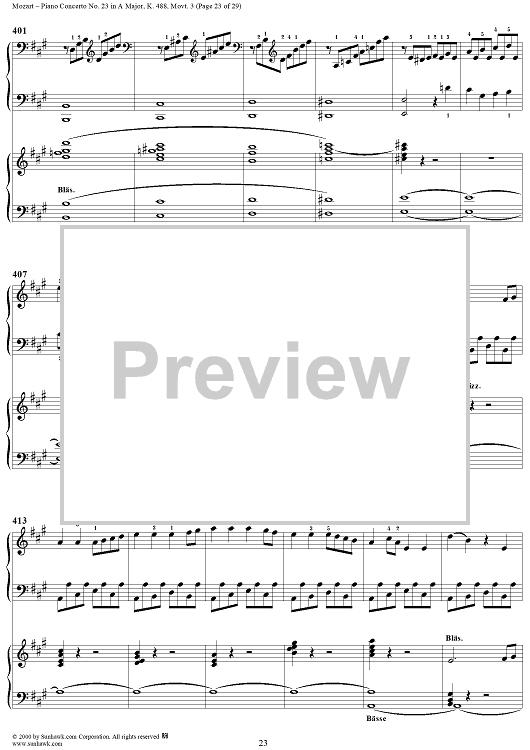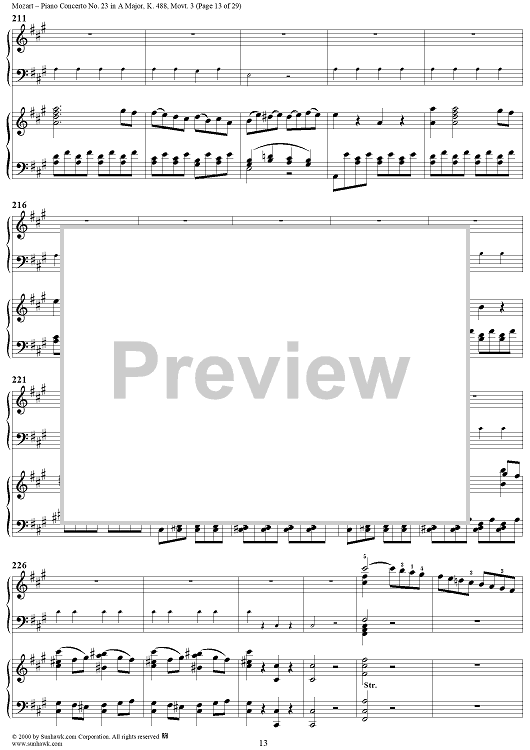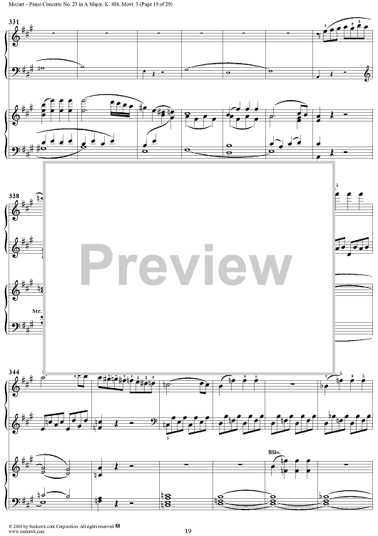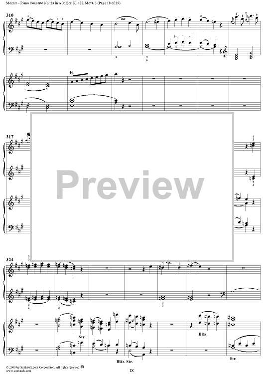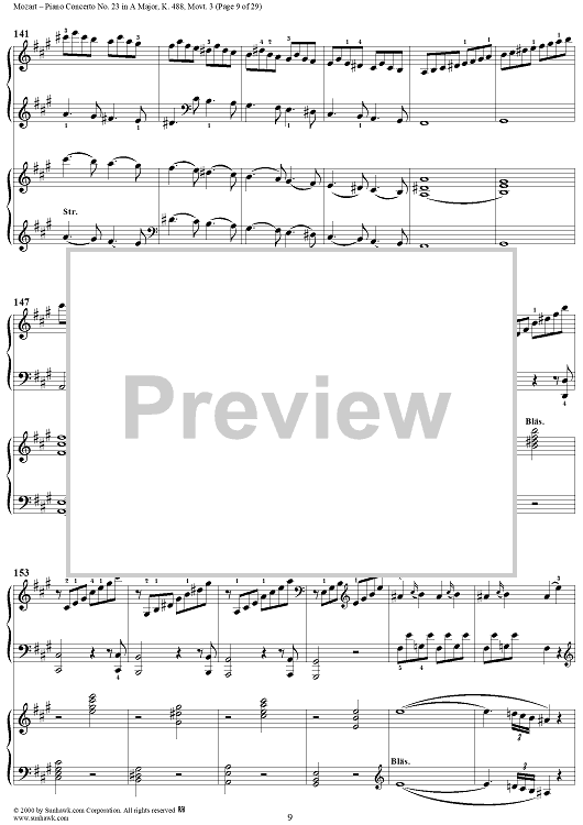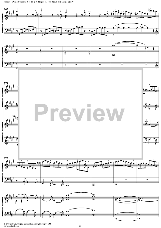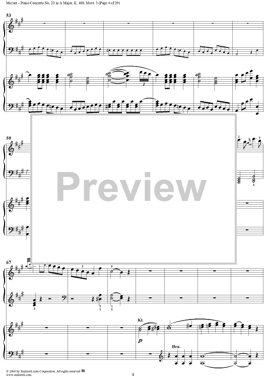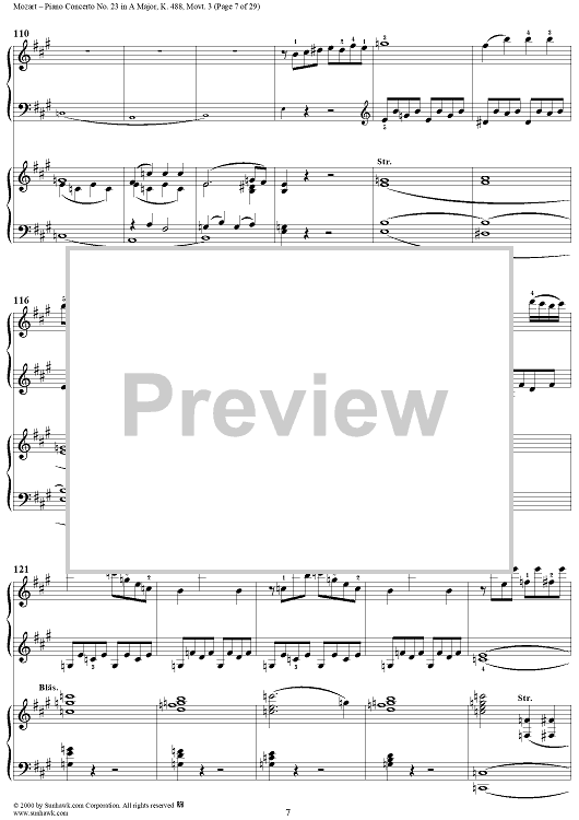 "Piano Concerto No. 23 in A Major movt. 3 - K.488 - Score" Sheet Music by Wolfgang Amadeus Mozart