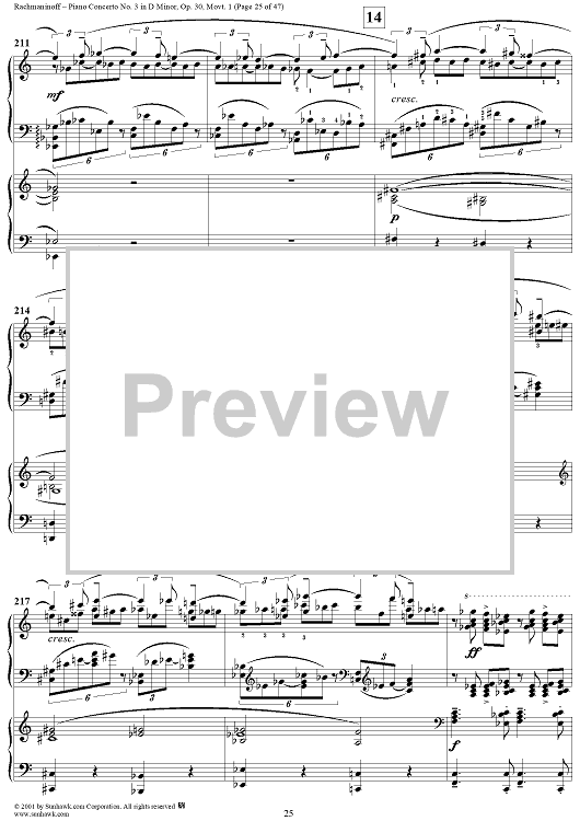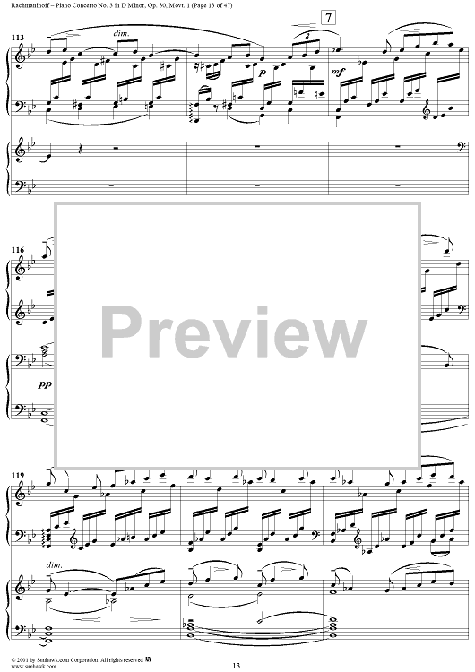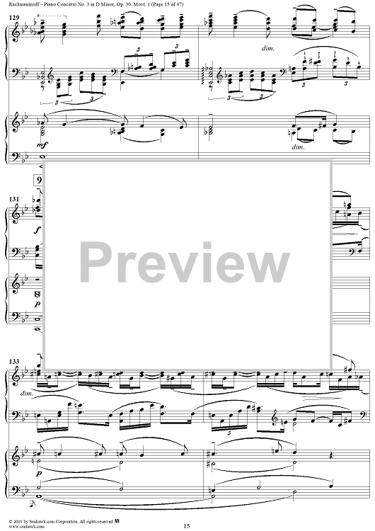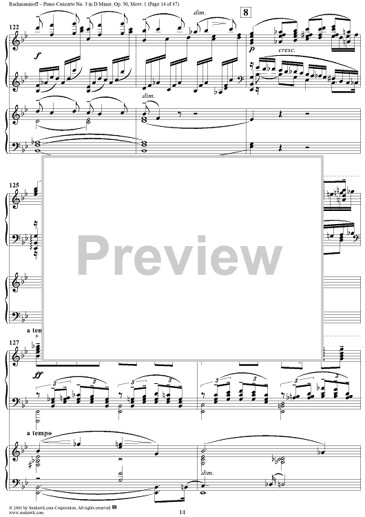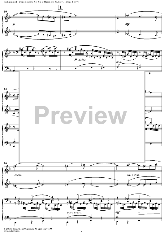 "Piano Concerto No. 3 in D Minor, Op. 30, Movement 1" Sheet Music by Sergei Rachmaninoff
