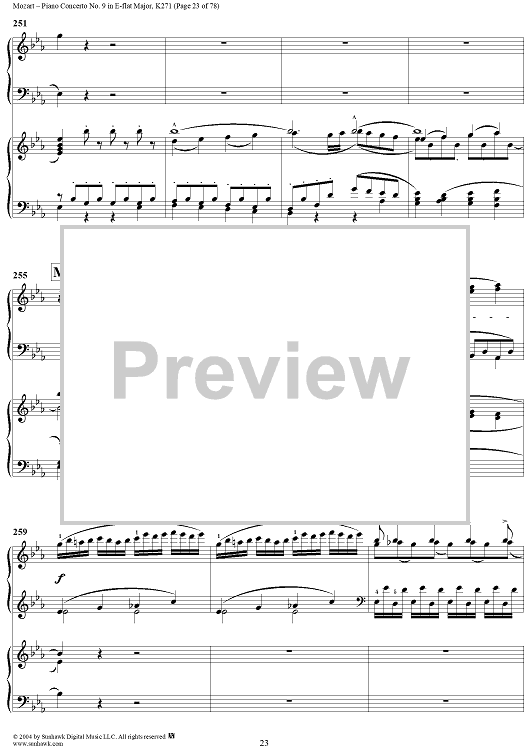 Digital Sheet Music for Piano Concerto No. 9 in E-flat Major, K. 271 by Wolfgang Amadeus Mozart scored for 2 Pianos, 4 Hands; id:294552