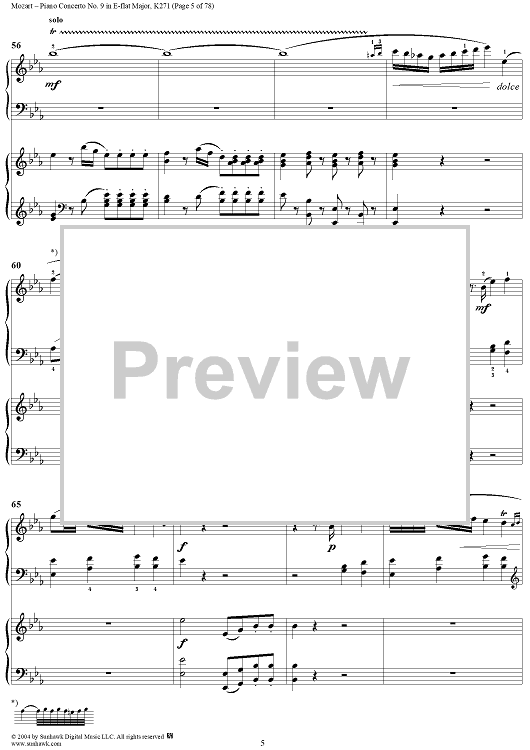 "Piano Concerto No. 9 in E-flat Major, K. 271" Sheet Music by Wolfgang Amadeus Mozart