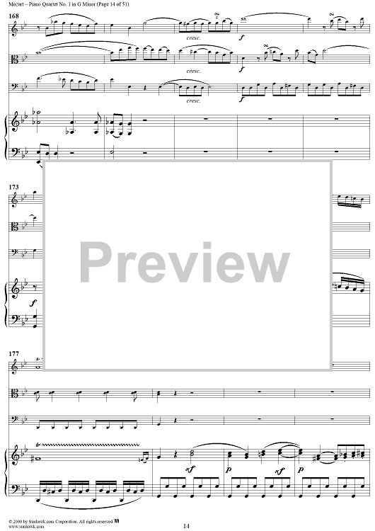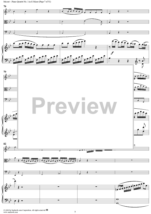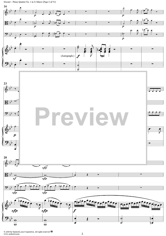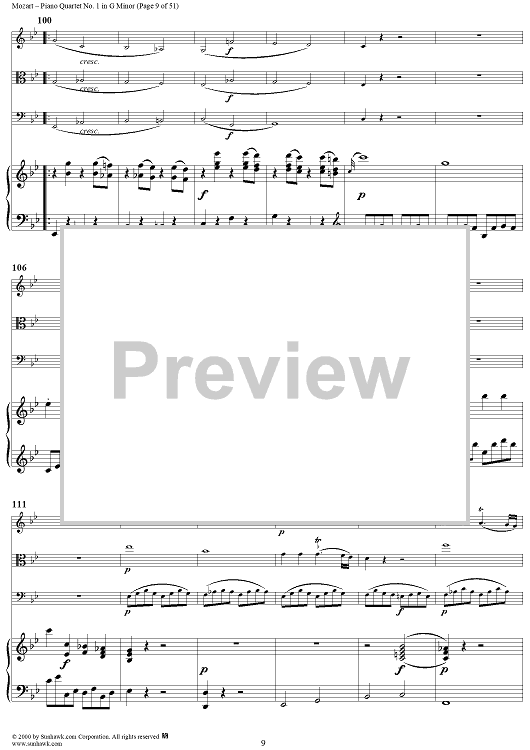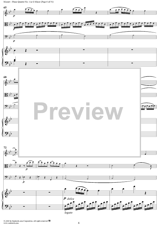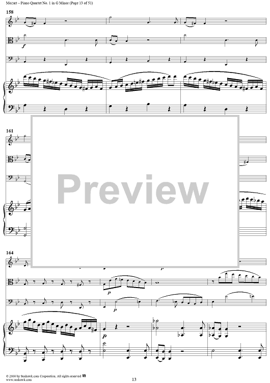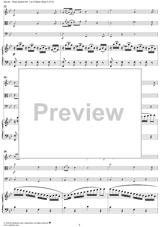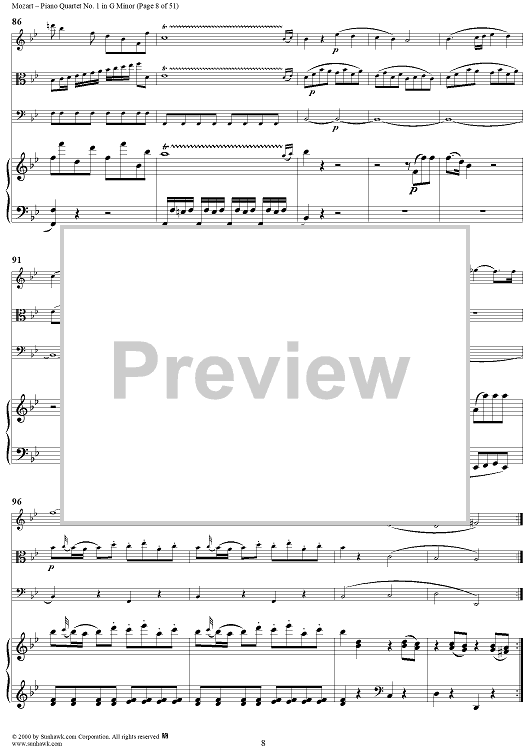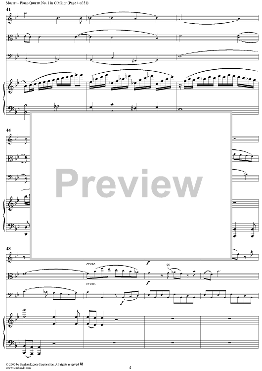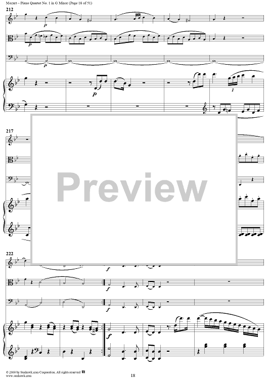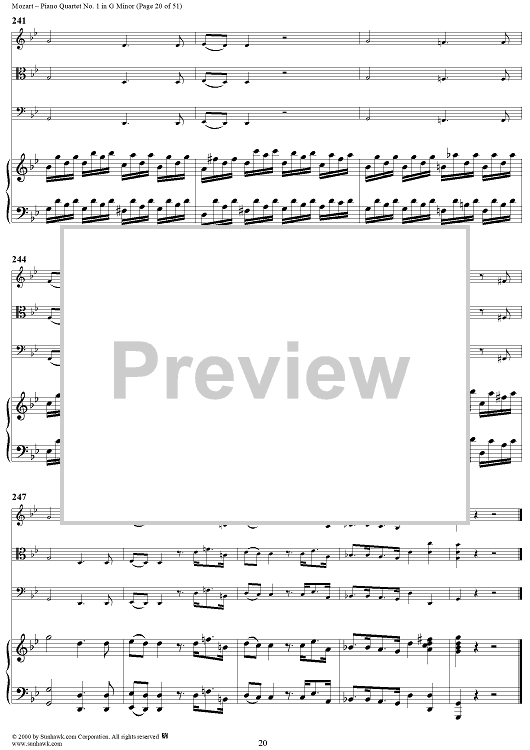 Digital Sheet Music for Piano Quartet No. 1 in G Minor K478 - Piano Score by Wolfgang Amadeus Mozart scored for Piano Quartet; id:253101
