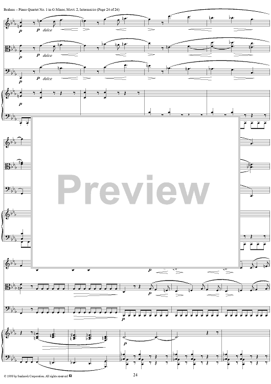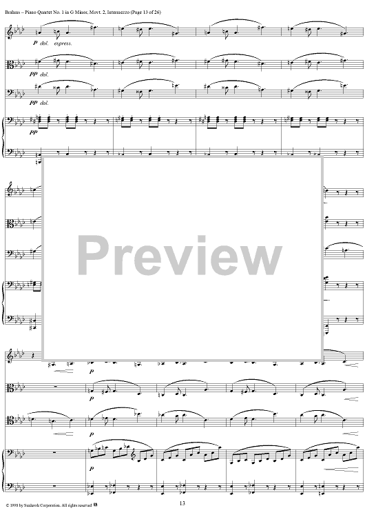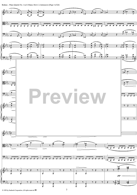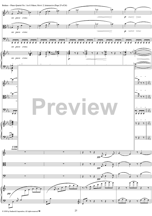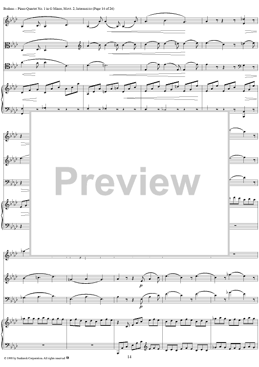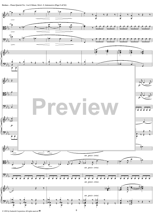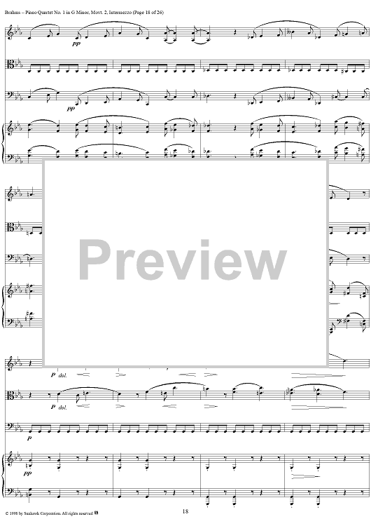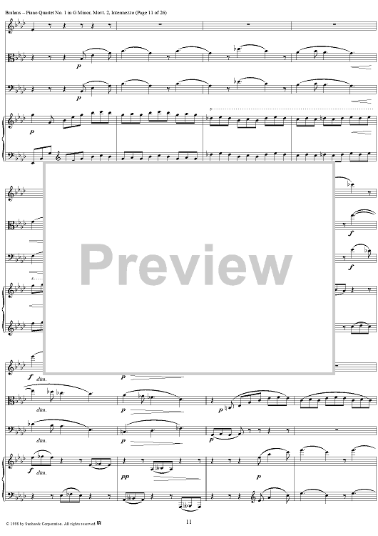 Digital Sheet Music for Piano Quartet no. 1 in G minor, op. 25: Movement 2 by Johannes Brahms scored for Piano Quartet; id:110917