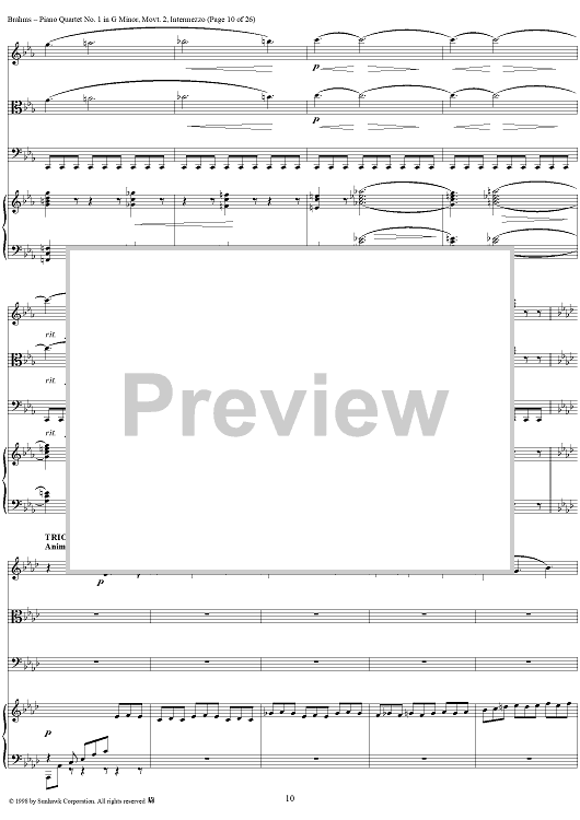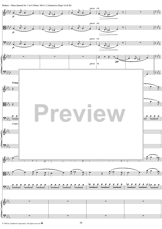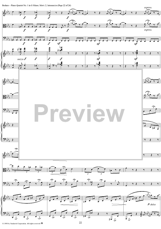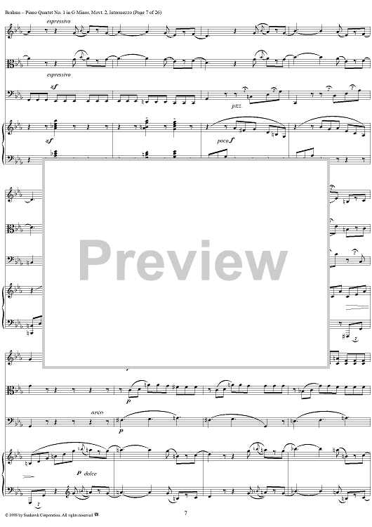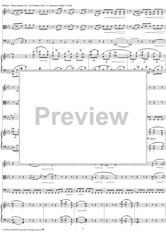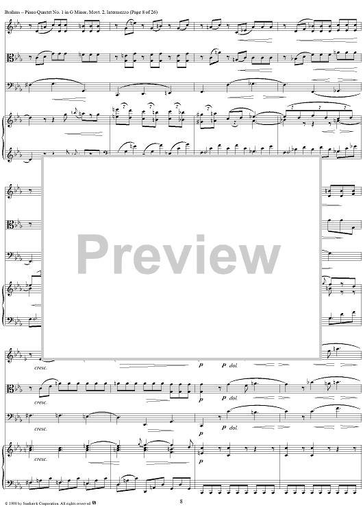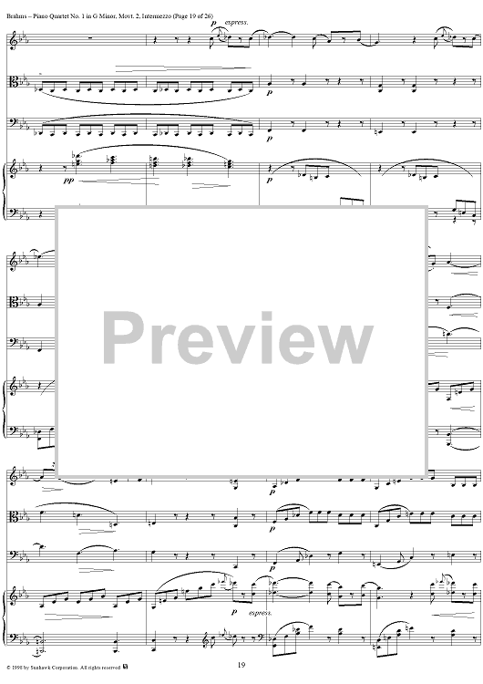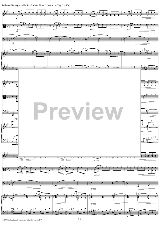 Digital Sheet Music for Piano Quartet no. 1 in G minor, op. 25: Movement 2 by Johannes Brahms scored for Piano Quartet; id:110917