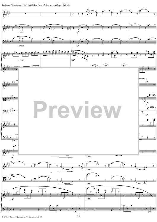 "Piano Quartet no. 1 in G minor, op. 25: Movement 2" Sheet Music by Johannes Brahms