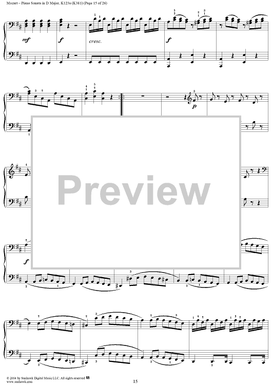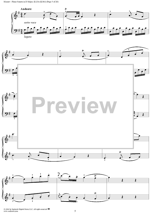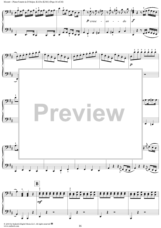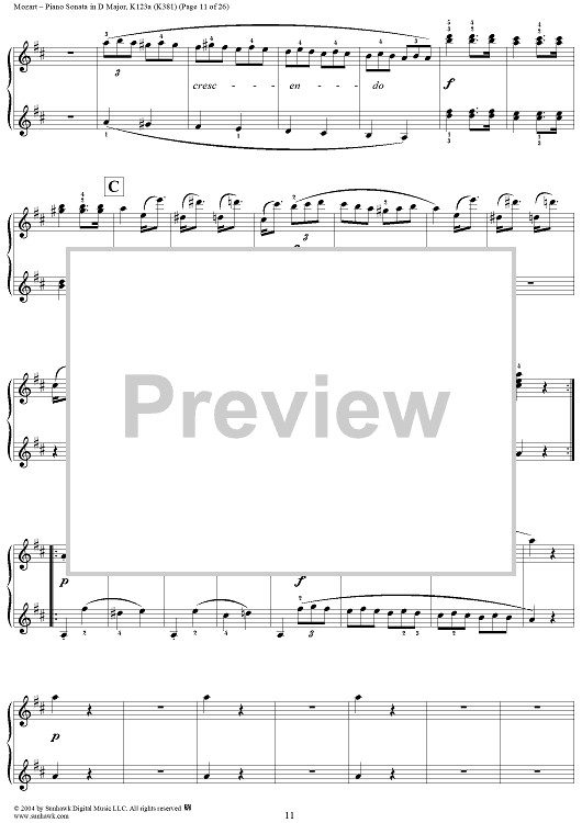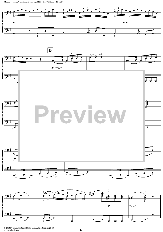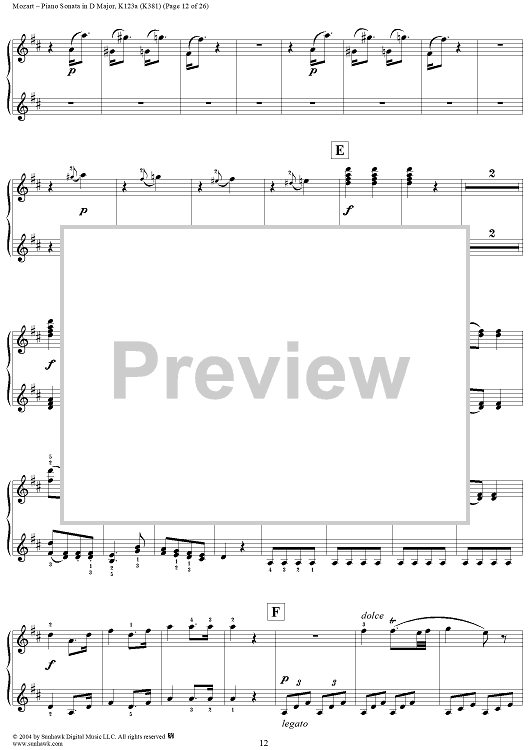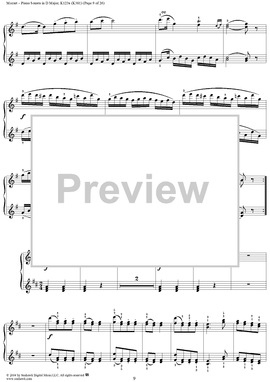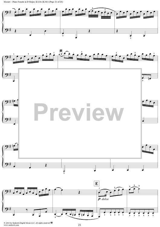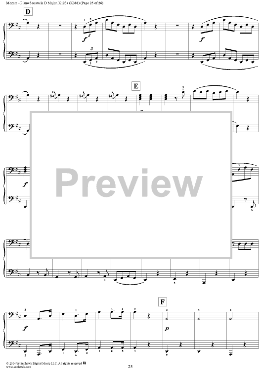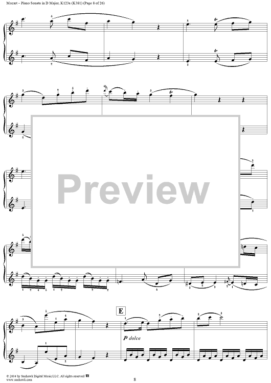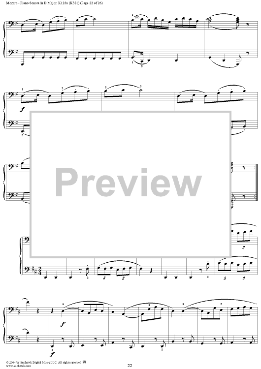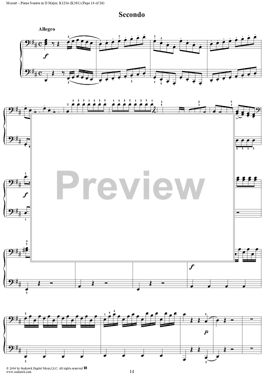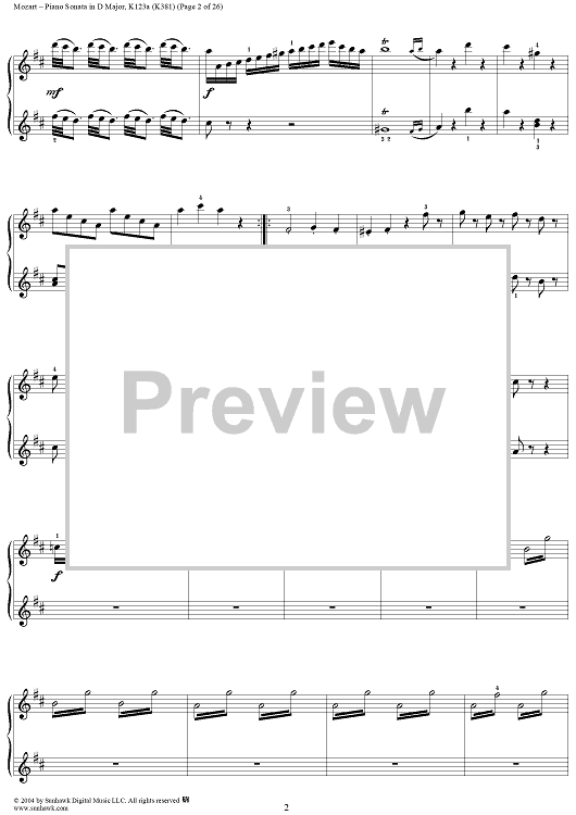 Digital Sheet Music for Piano Sonata in D Major, K123a (K381) by Wolfgang Amadeus Mozart scored for 1 Piano, 4 Hands; id:294578