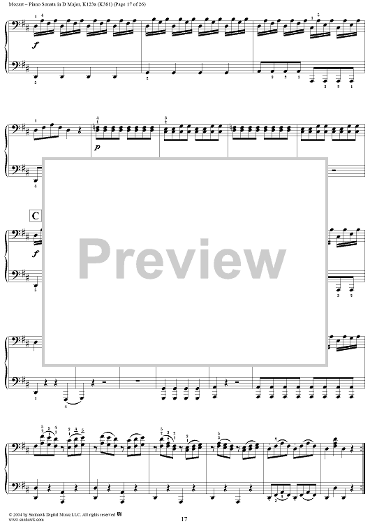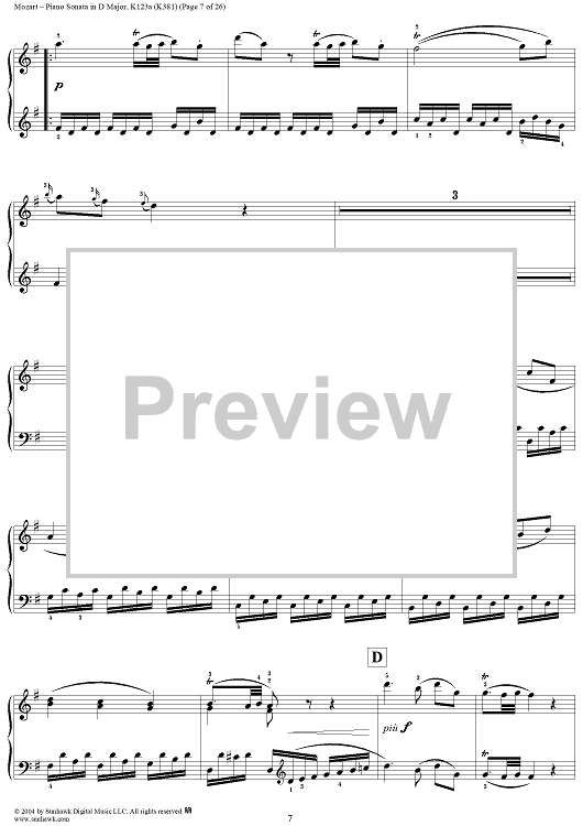 "Piano Sonata in D Major, K123a (K381)" Sheet Music by Wolfgang Amadeus Mozart