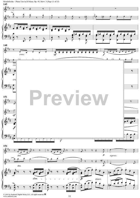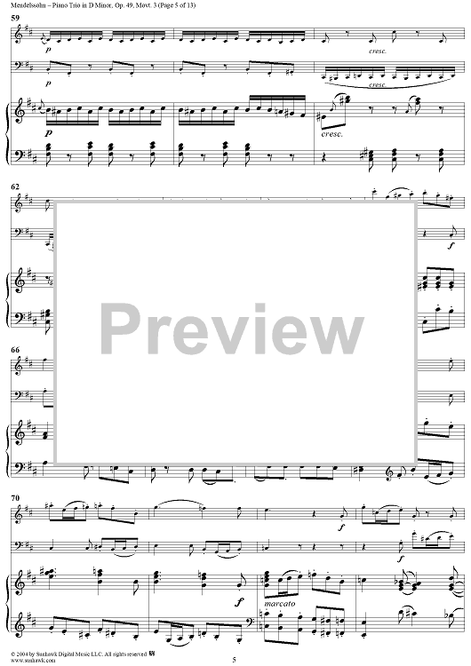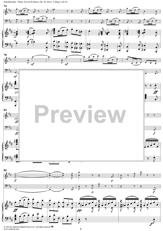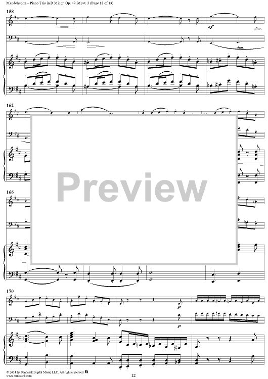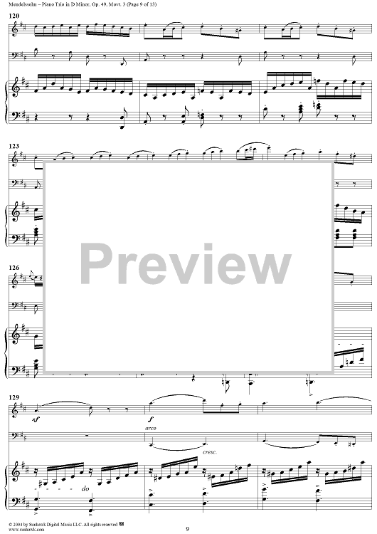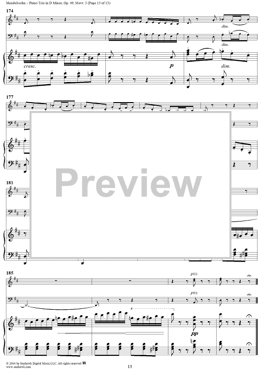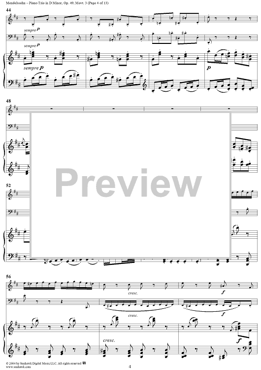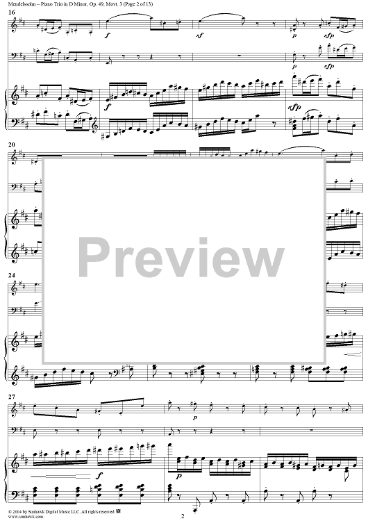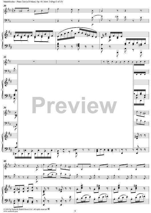 Digital Sheet Music for Piano Trio in D minor, Op. 49, Movt. 3 - Score by Felix Mendelssohn scored for Piano Trio; id:251964