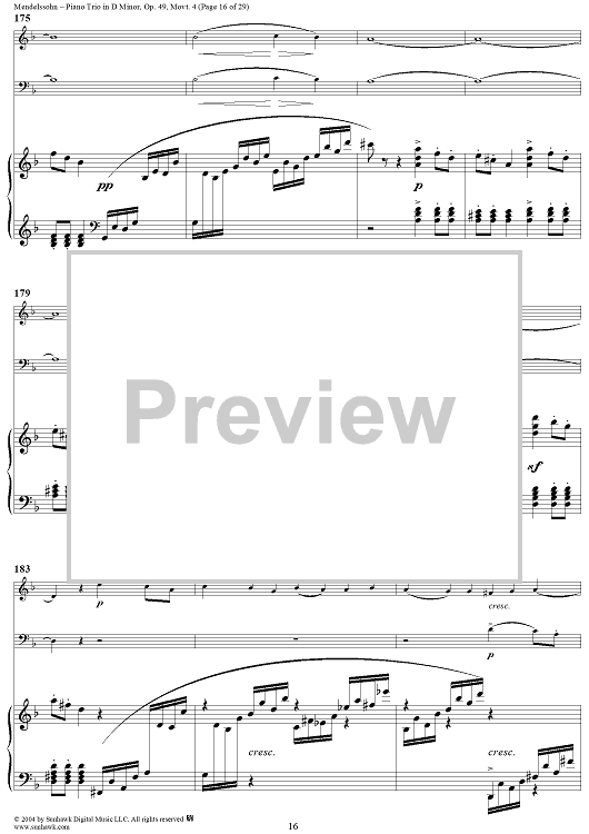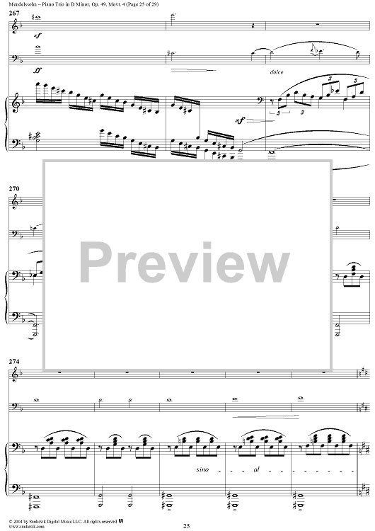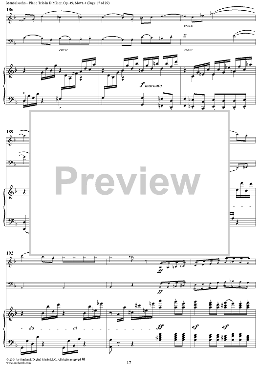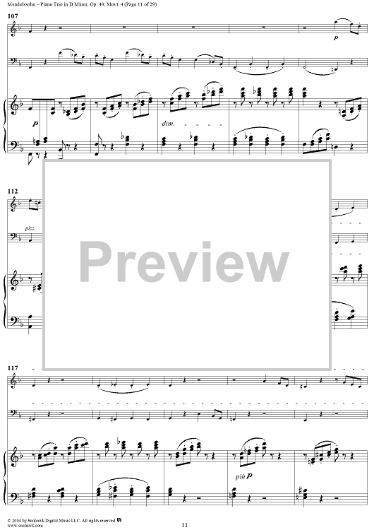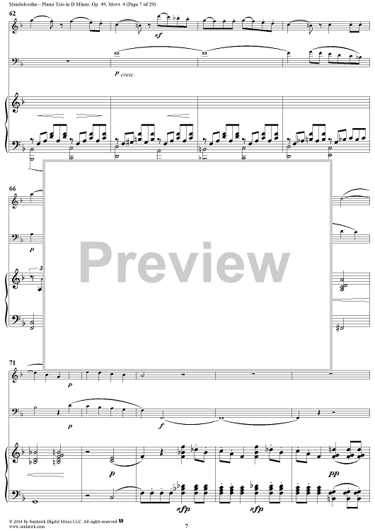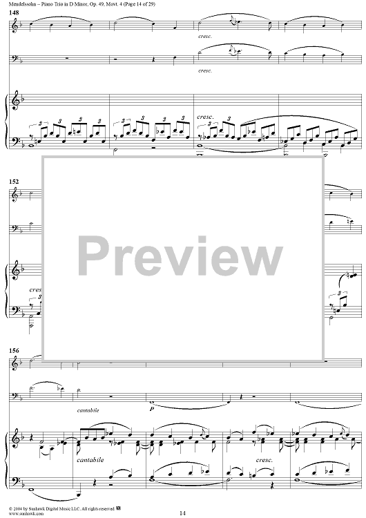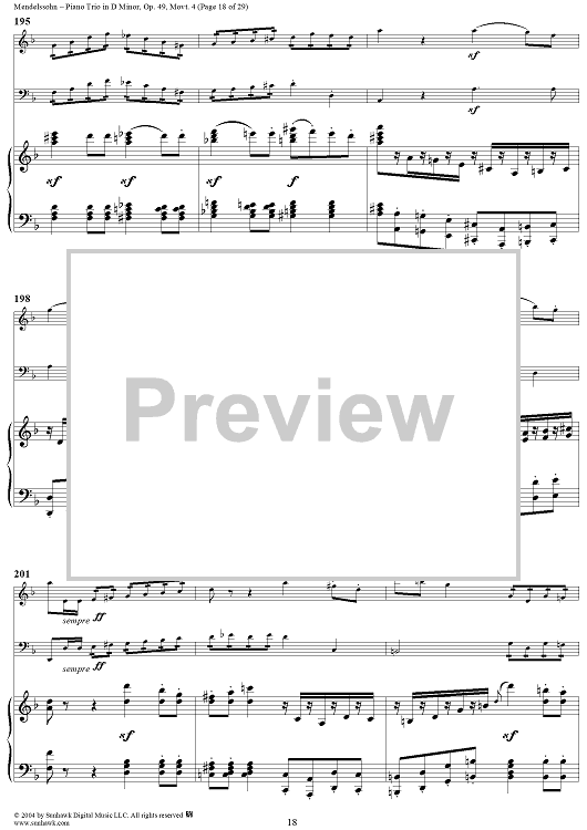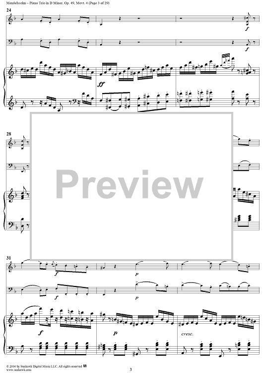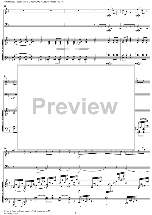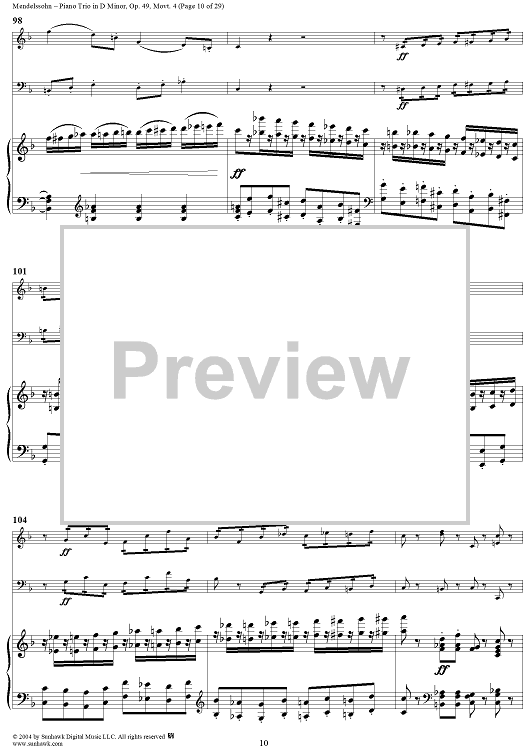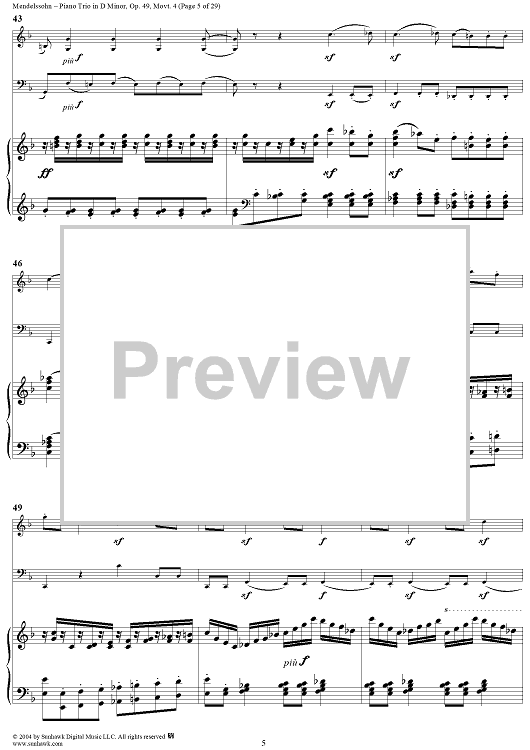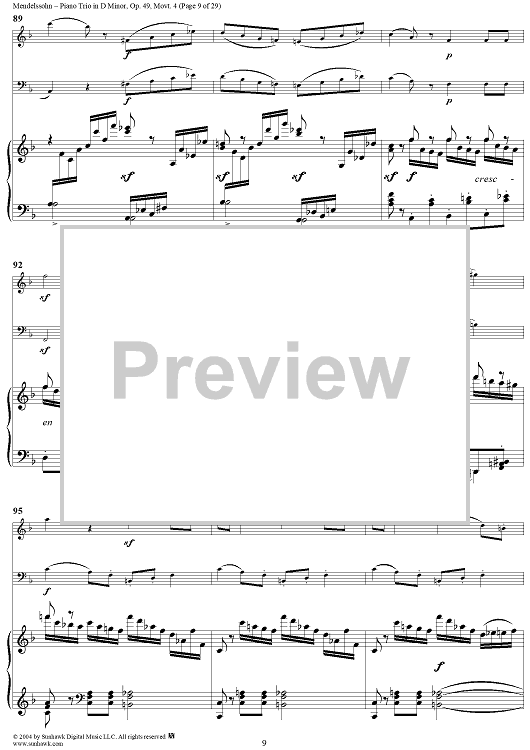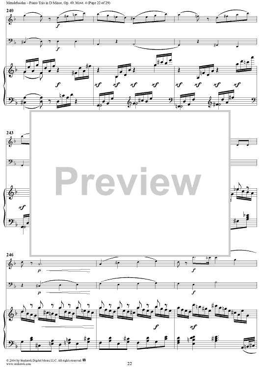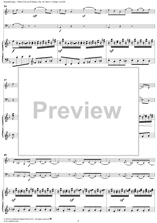 Digital Sheet Music for Piano Trio in D minor, Op. 49, Movt. 4 - Score by Felix Mendelssohn scored for Piano Trio; id:251967