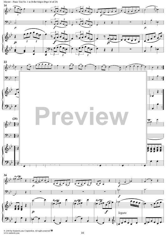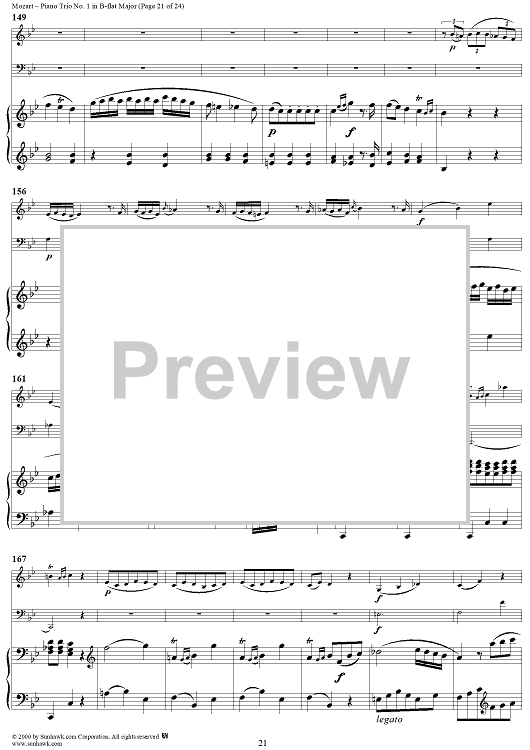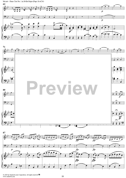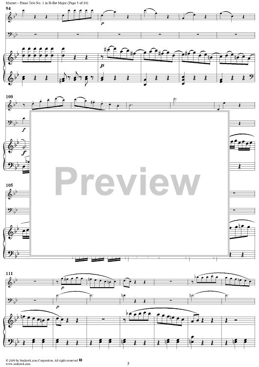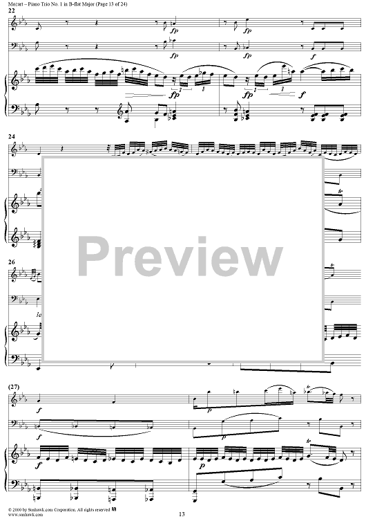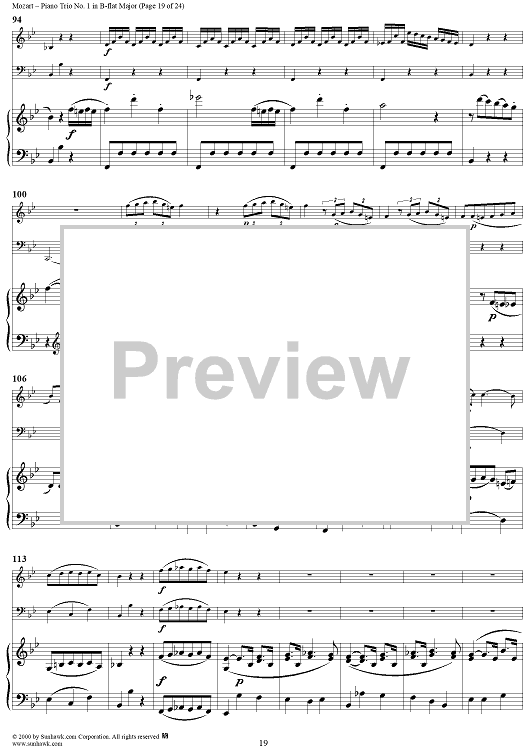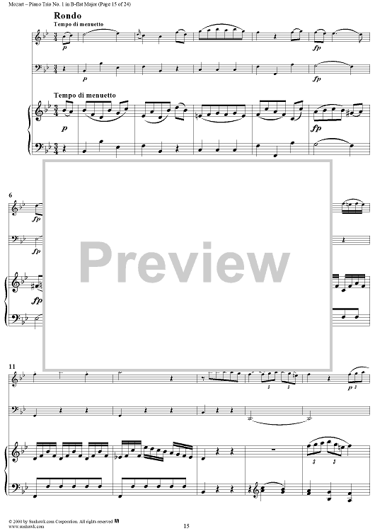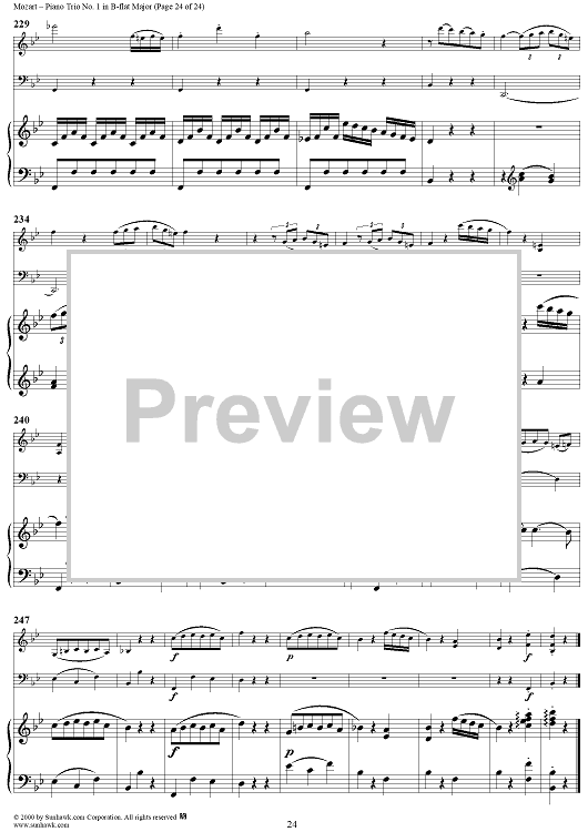 Digital Sheet Music for Piano Trio No. 1 in B-flat Major K254 - Piano Score by Wolfgang Amadeus Mozart scored for Piano Trio; id:262984
