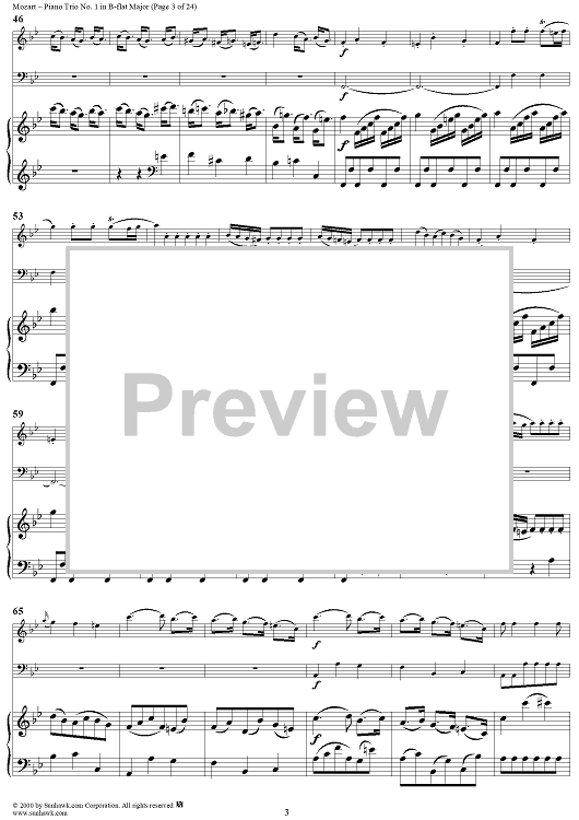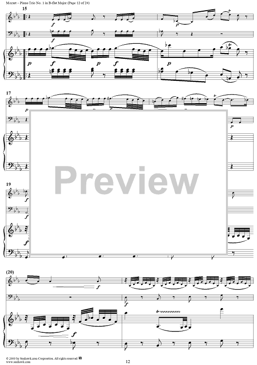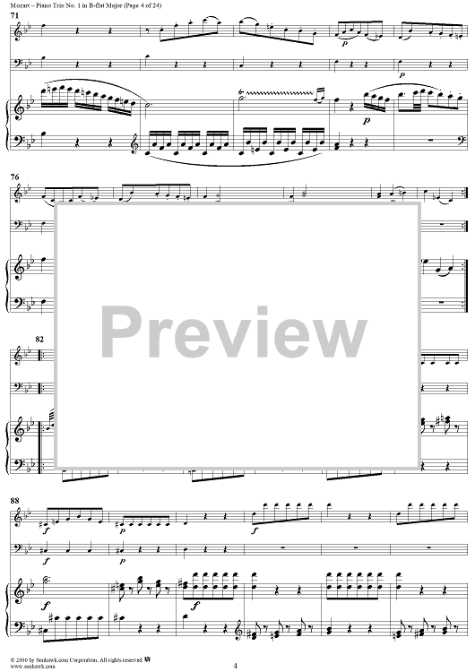 "Piano Trio No. 1 in B-flat Major K254 - Piano Score" Sheet Music by Wolfgang Amadeus Mozart