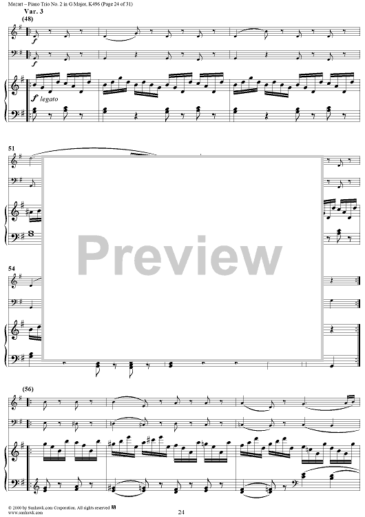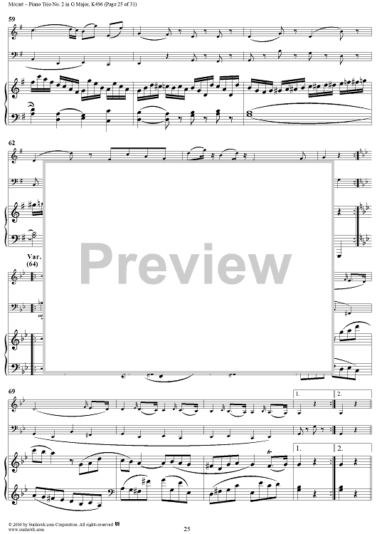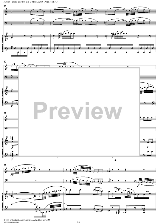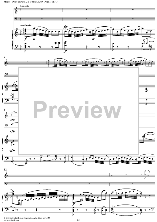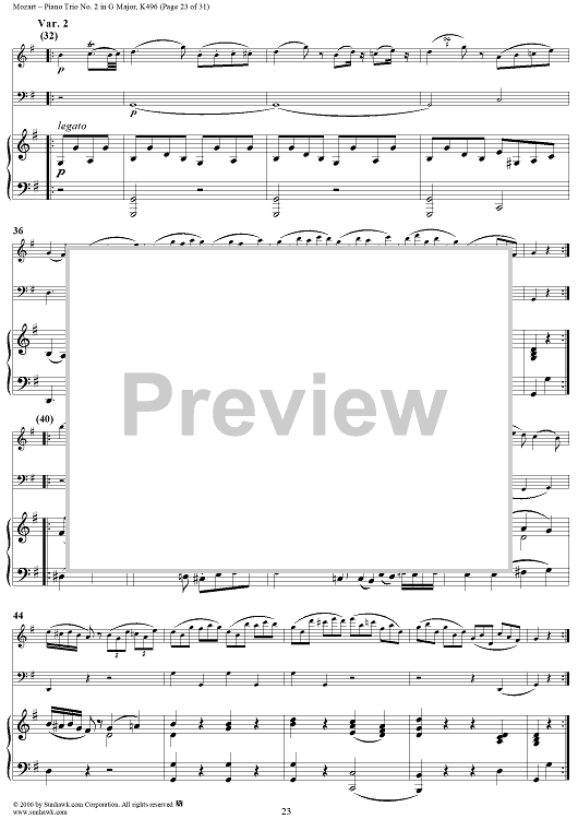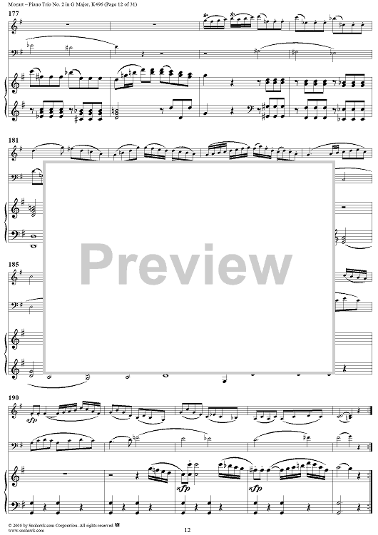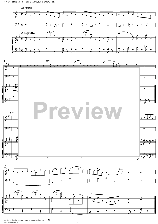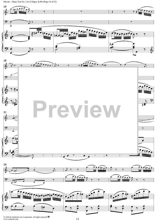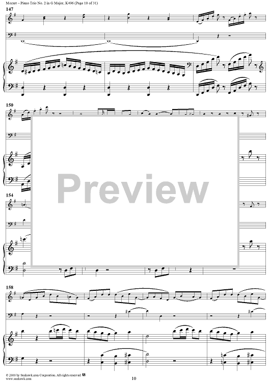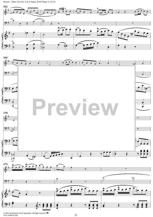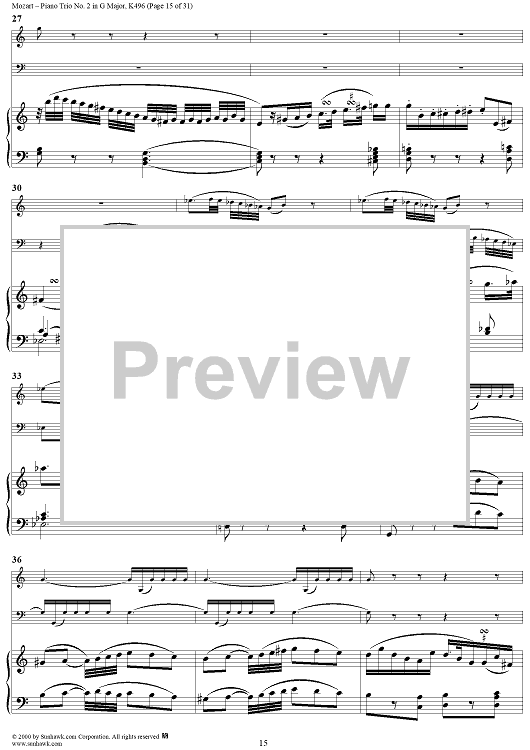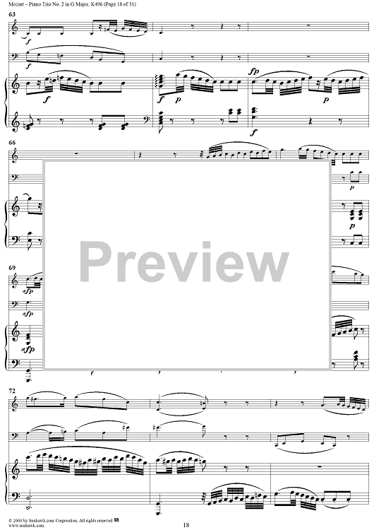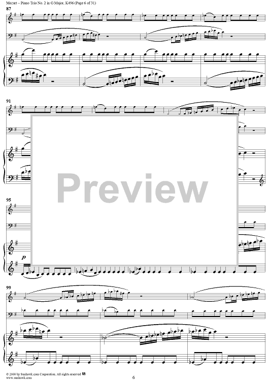 Digital Sheet Music for Piano Trio No. 2 in G Major K496 - Piano Score by Wolfgang Amadeus Mozart scored for Piano Trio; id:254502