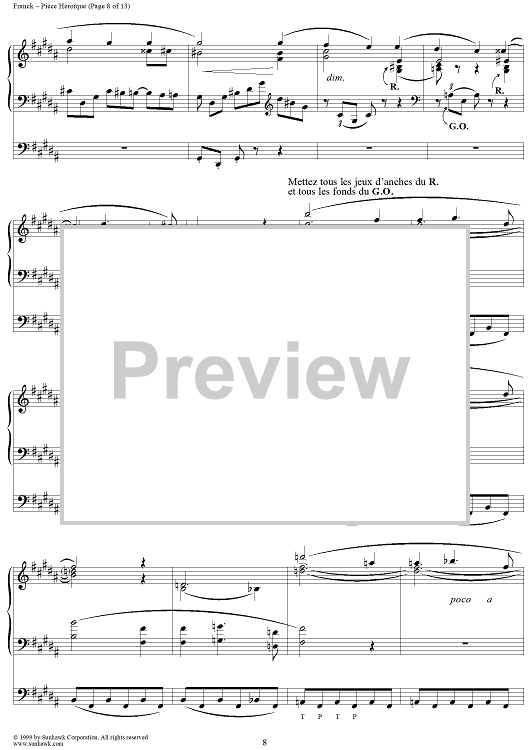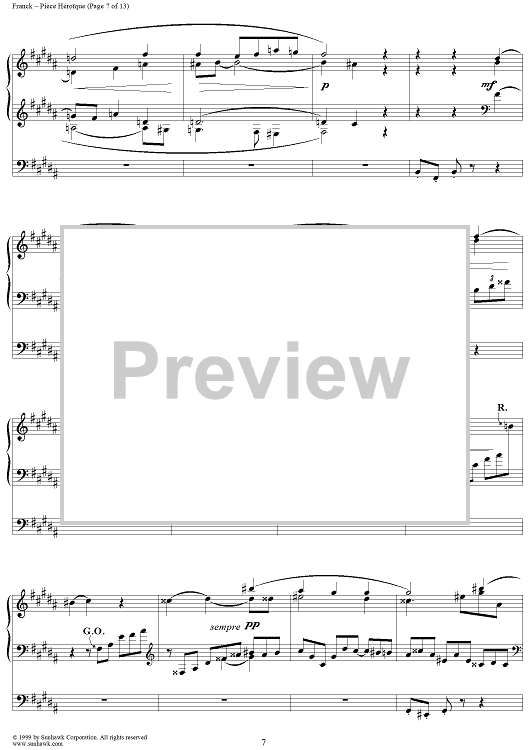 Digital Sheet Music for Pièce Héroïque by César Franck scored for Organ Solo; id:118198