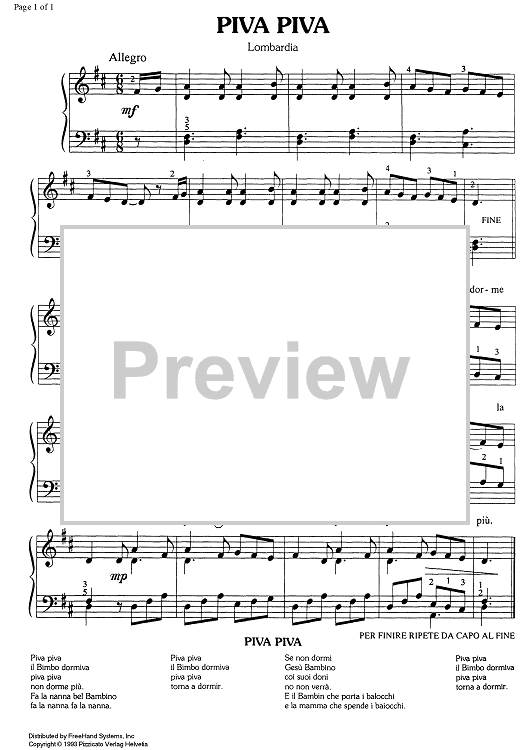 "Piva Piva (Lombardia)" Sheet Music by Traditional
