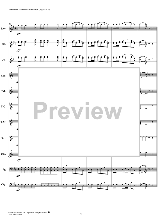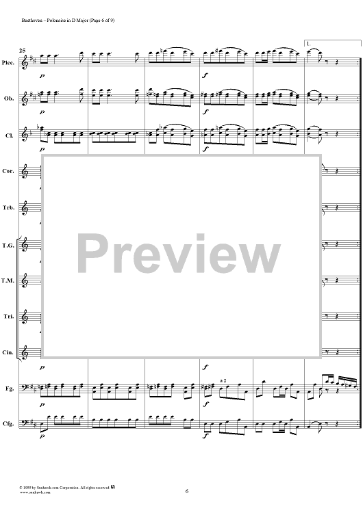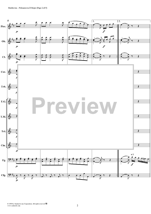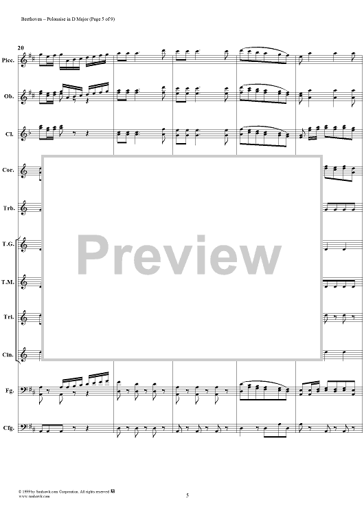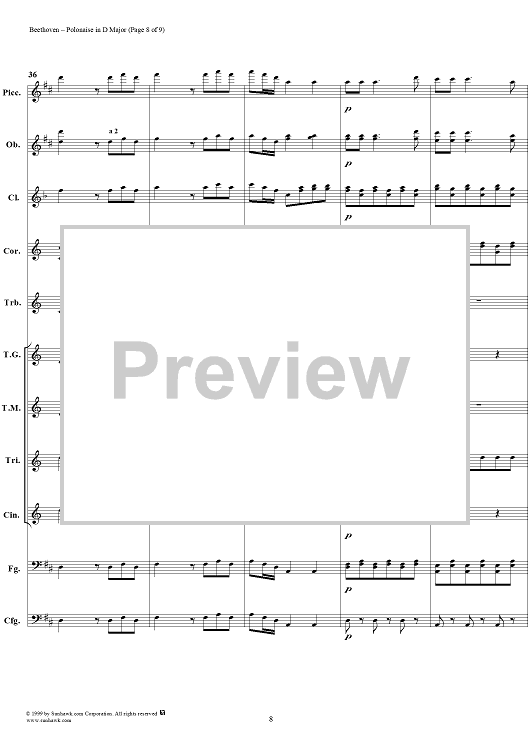 Digital Sheet Music for Polonaise in D major - Full Score by Ludwig van Beethoven scored for Concert Band; id:119278