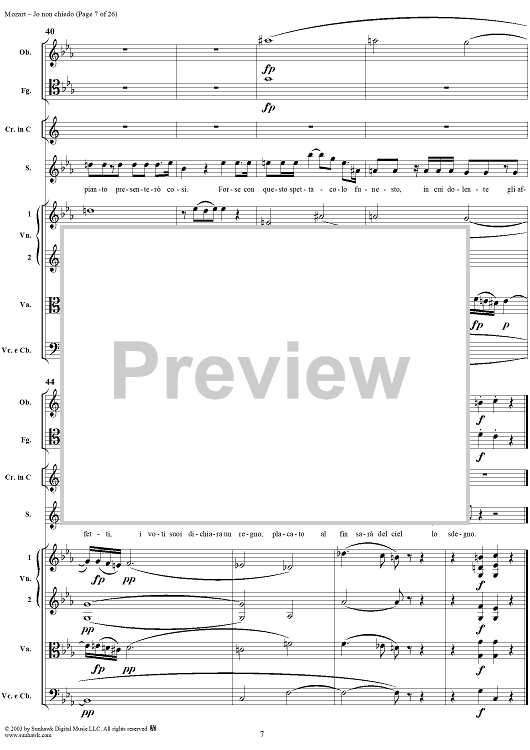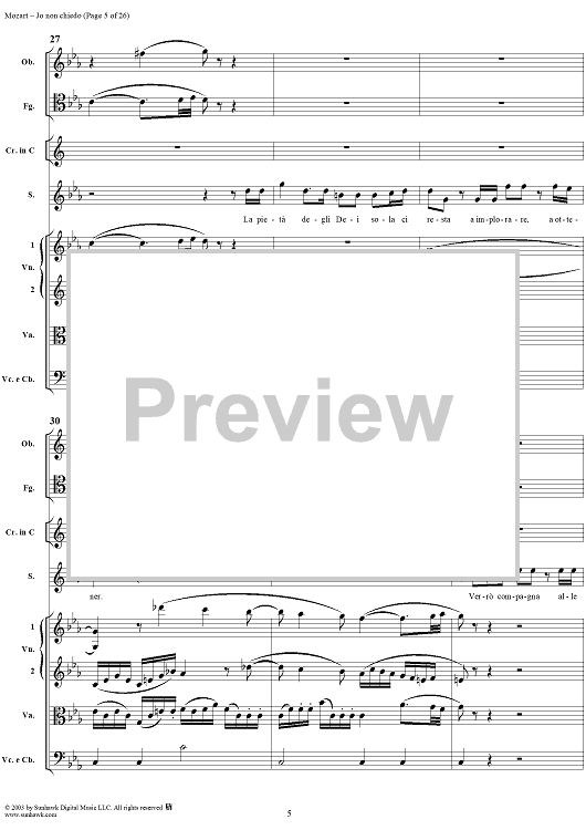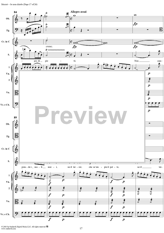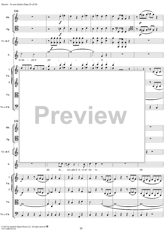 Digital Sheet Music for "Popoli di Tessaglia", recitative and "Io non chiedo", aria, K300b (K316) - Full Score by Wolfgang Amadeus Mozart scored for Soprano/Orchestra; id:292285