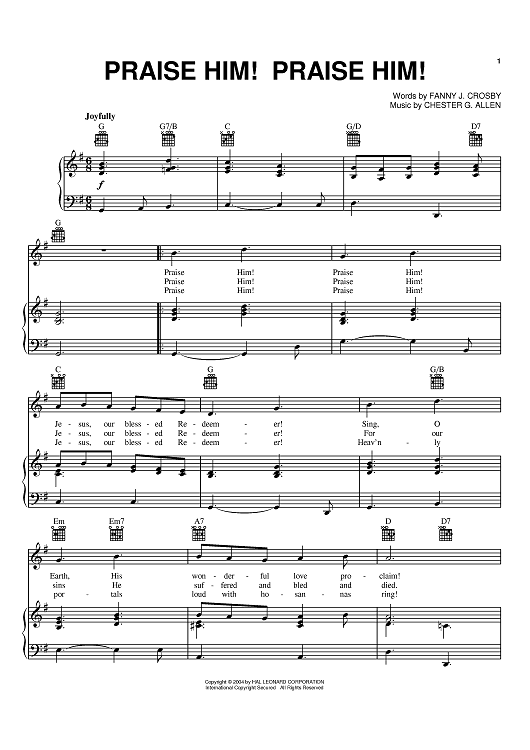 Digital Sheet Music for Praise Him! Praise Him! by Fanny Crosby, Chester G. Allen scored for Piano/Vocal/Chords; id:373674