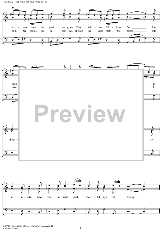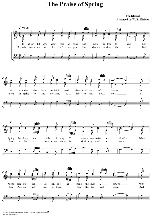 Digital Sheet Music for Praise of Spring, The by William E. Hickson, Traditional scored for Three-part Mixed Chorus; id:261788