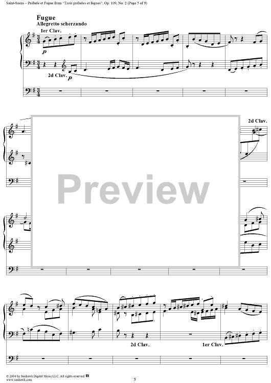 Digital Sheet Music for Prélude et Fugue in G Major, No. 2 from "Trois préludes et fugues", Op. 109 by Camille Saint-Saëns scored for Organ Solo; id:303369