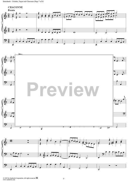 Digital Sheet Music for Prelude, Fugue and Chaconne, B137 by Dietrich Buxtehude scored for Organ Solo; id:118024