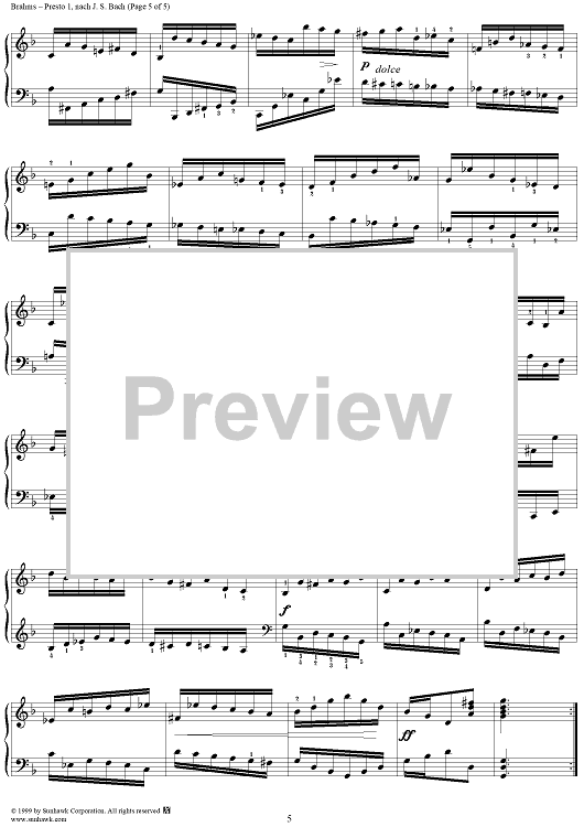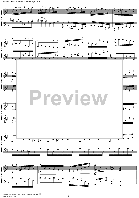 "Presto 1, after J.S. Bach, No. 3 from "5 Studies"" Sheet Music by Johannes Brahms