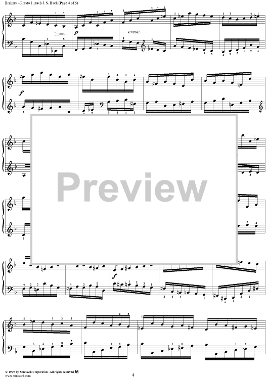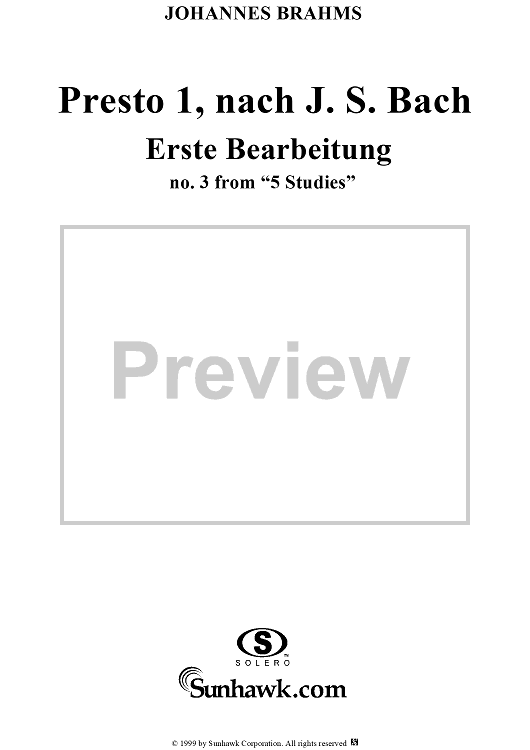 Digital Sheet Music for Presto 1, after J.S. Bach, No. 3 from "5 Studies" by , Johannes Brahms scored for Piano Studies; id:273872