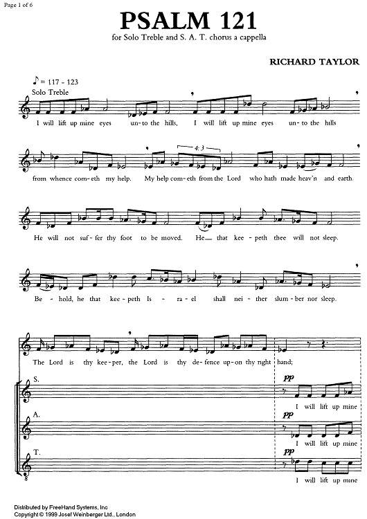 Digital Sheet Music for Psalm 121 by , Richard Taylor scored for Bass Solo/Choir; id:333724