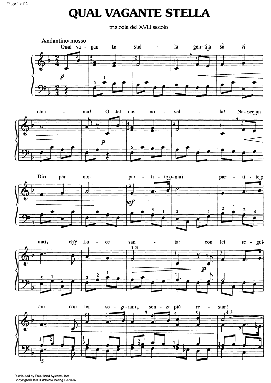 "Qual vagante stella" Sheet Music by Traditional