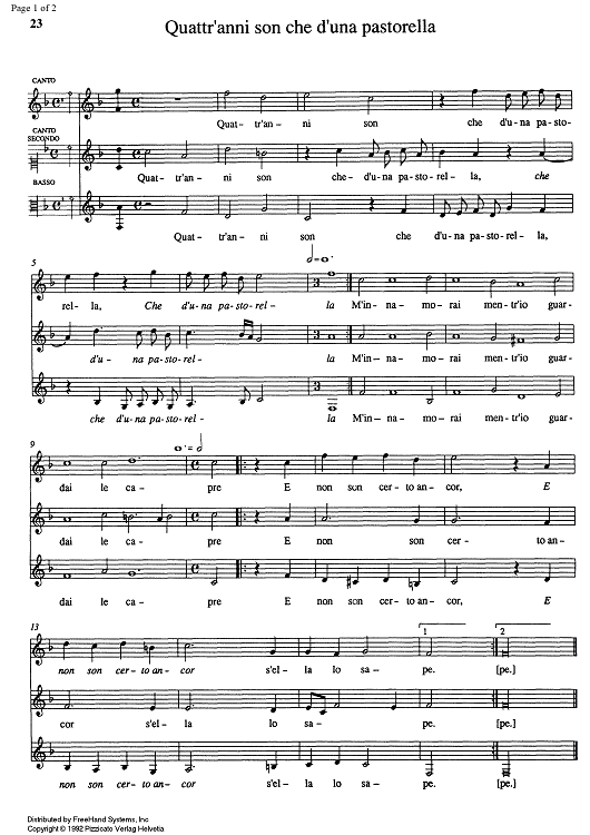 Digital Sheet Music for Quattr'anni son che d'una pastorella by , Alessandro Orologio scored for Female Chorus; id:333791
