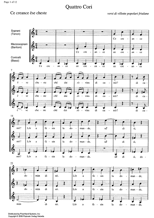 "Quattro Cori" Sheet Music by Piero Pezzè