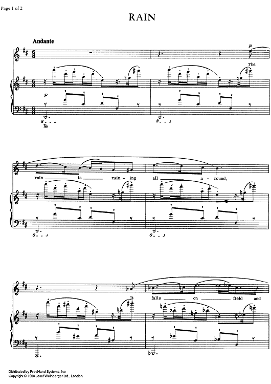 Digital Sheet Music for Rain by Malcolm Williamson scored for Soprano or Tenor/Piano; id:332960