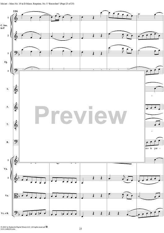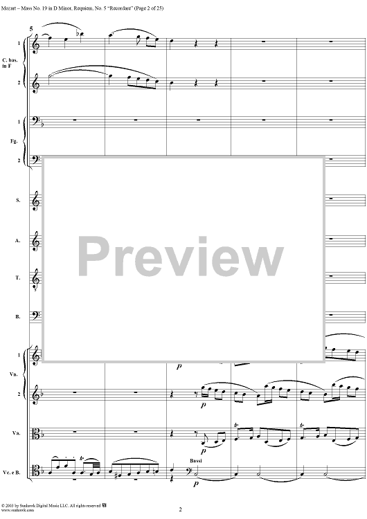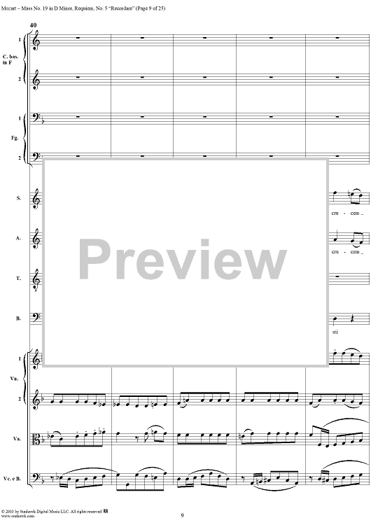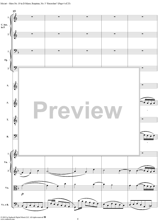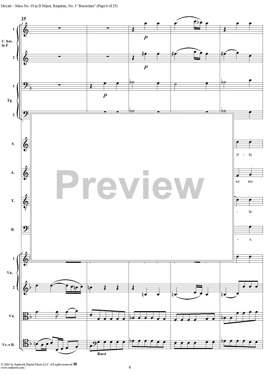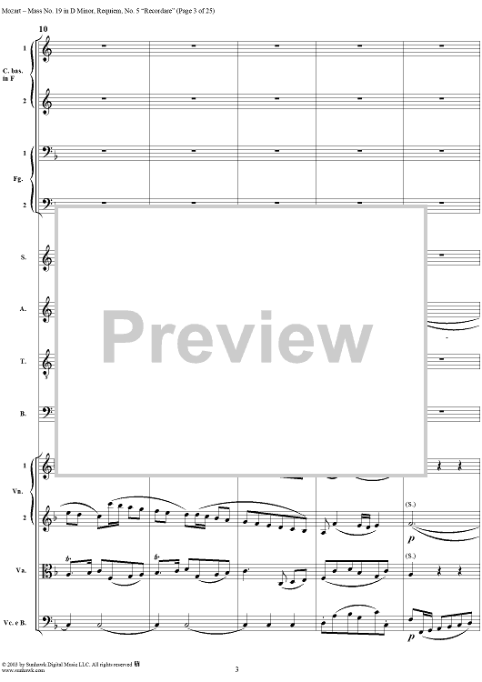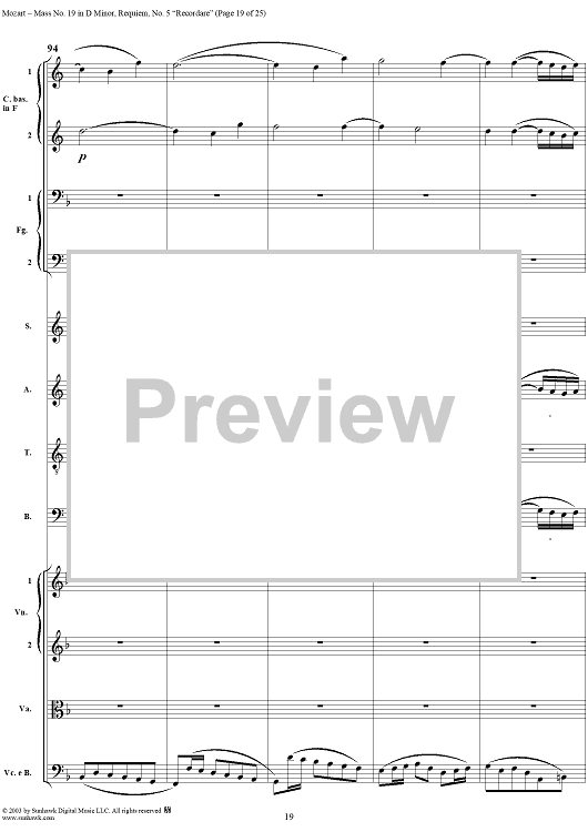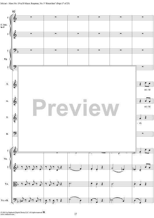Digital Sheet Music for Recordare, No. 5 from Mass No. 19 (Requiem) in D Minor, K626 - Full Score by Wolfgang Amadeus Mozart scored for Chorus and Orchestra; id:292257
