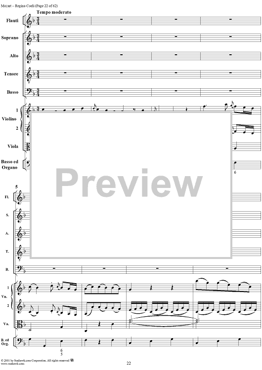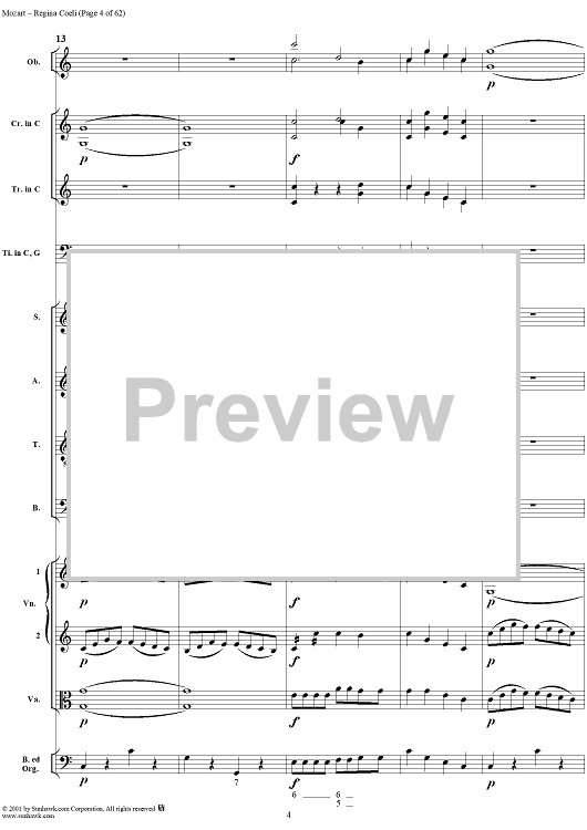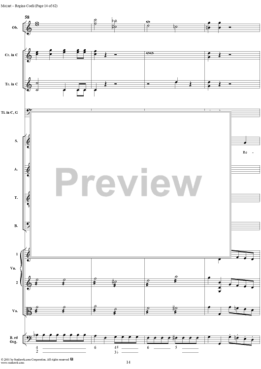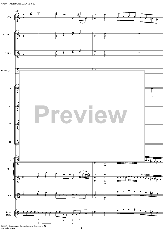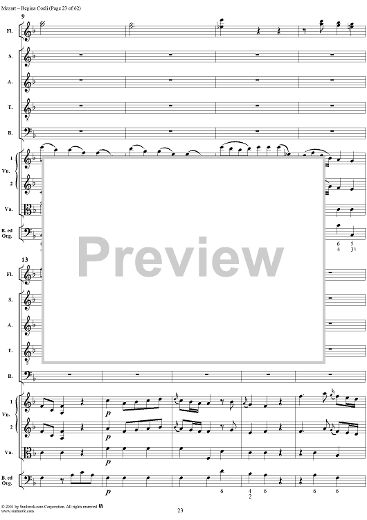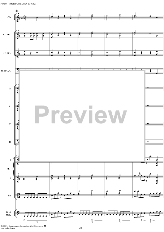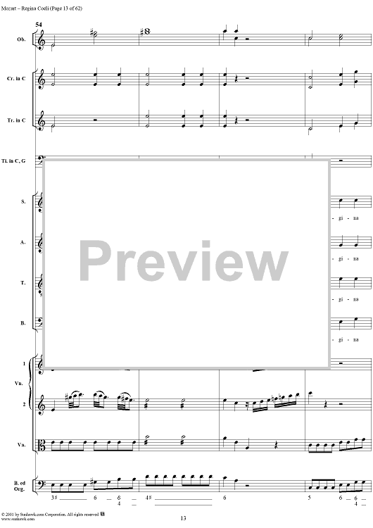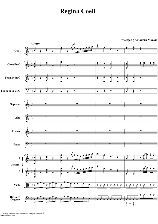Digital Sheet Music for Regina Coeli by Wolfgang Amadeus Mozart scored for Four-part Mixed Chorus/Orchestra; id:265371