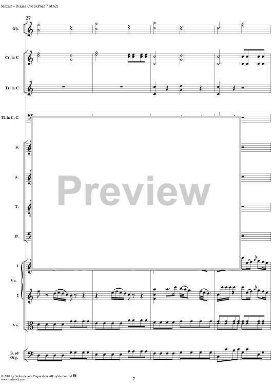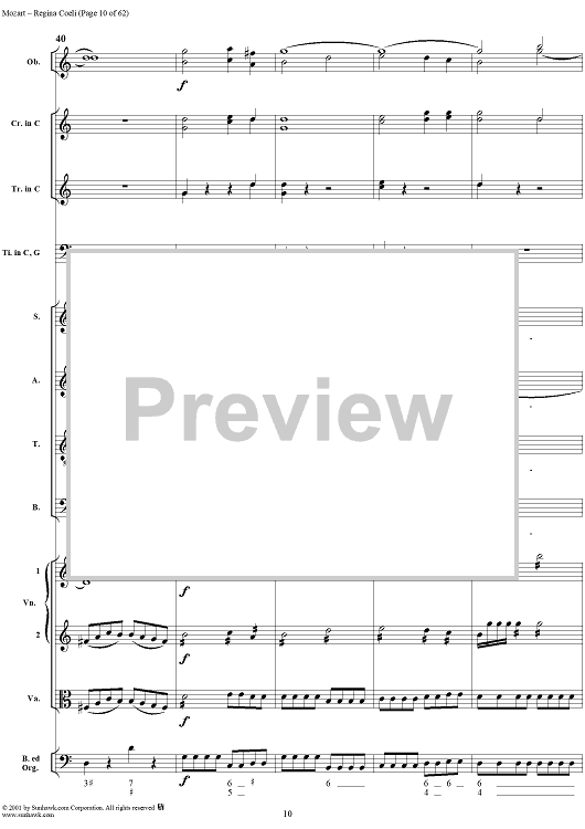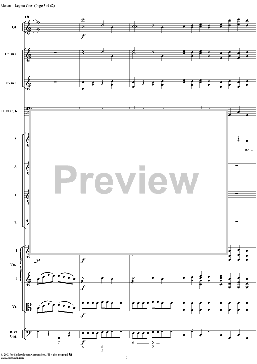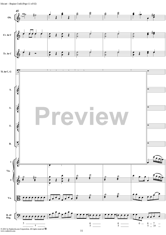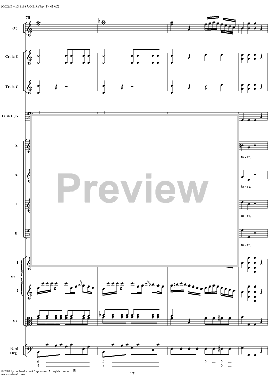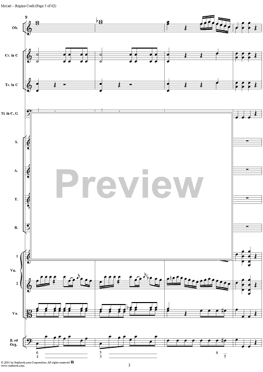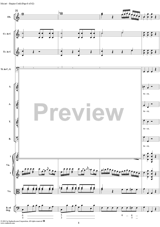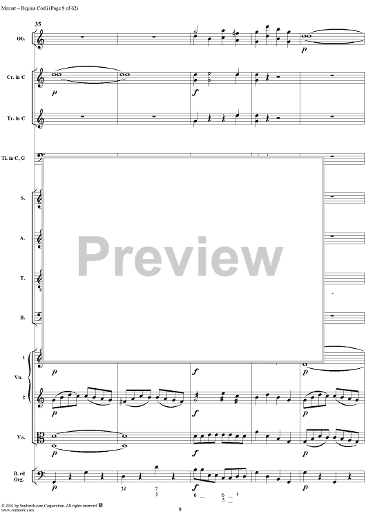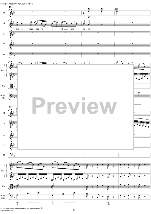 Digital Sheet Music for Regina Coeli by Wolfgang Amadeus Mozart scored for Four-part Mixed Chorus/Orchestra; id:265371