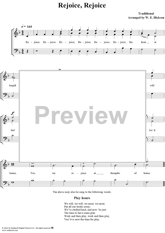 Digital Sheet Music for Rejoice, Rejoice by William E. Hickson, Traditional scored for Three-part Mixed Chorus; id:261532