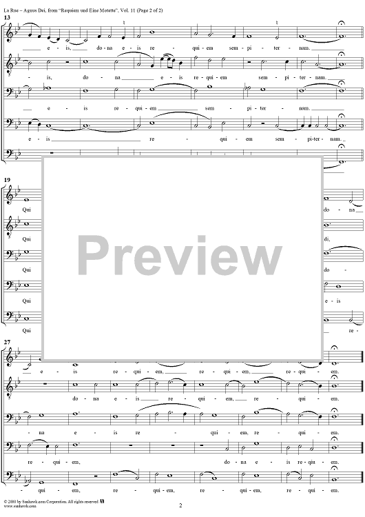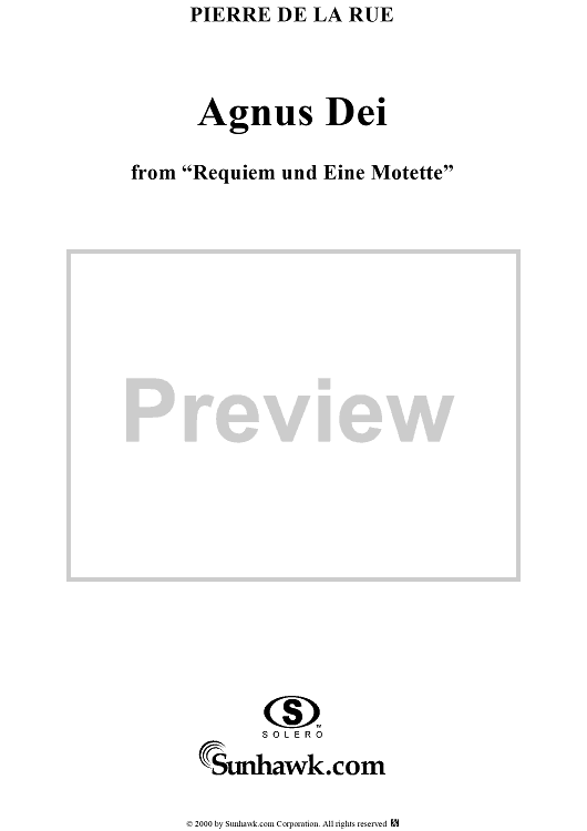 Digital Sheet Music for Requiem und Eine Motette, vol.11, Agnus Dei by Pierre de La Rue scored for Four-part Mixed Chorus; id:271285