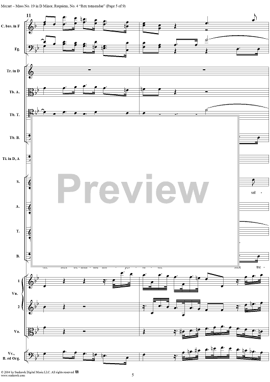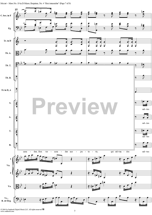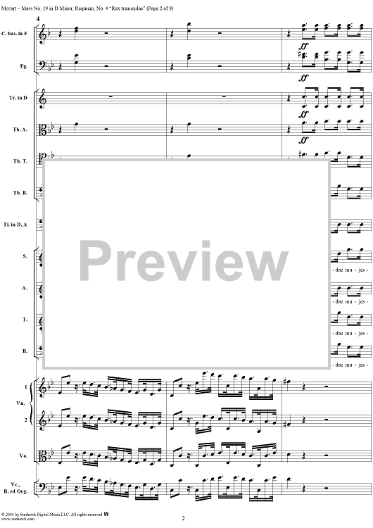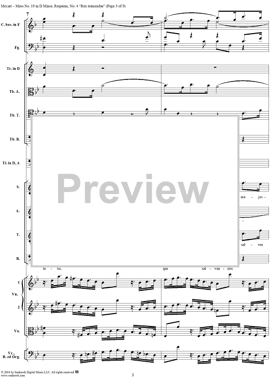 Digital Sheet Music for Rex tremendae, No. 4 from Mass No. 19 (Requiem) in D Minor, K626 - Full Score by Wolfgang Amadeus Mozart scored for Chorus and Orchestra; id:292256