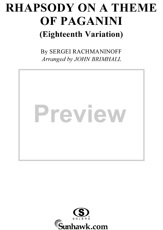 "Rhapsody on a Theme of Paganini (18th var.)" Sheet Music by Sergei Rachmaninoff