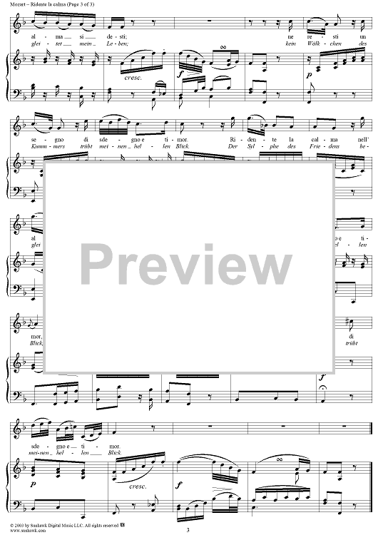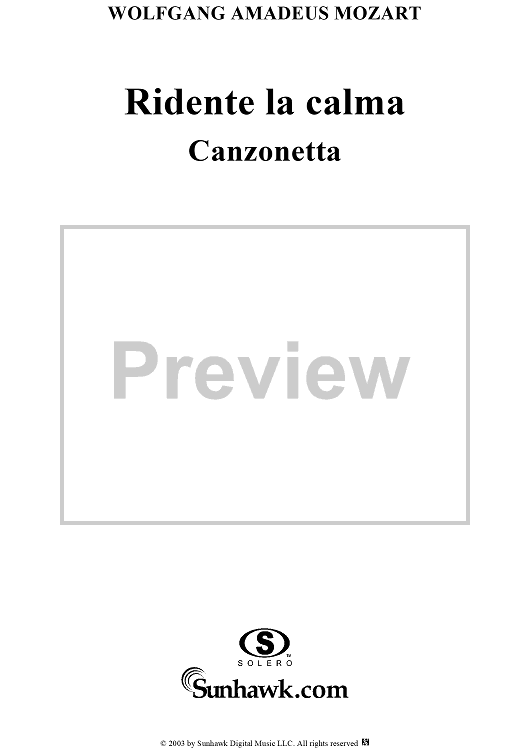 Digital Sheet Music for Ridente la Calma (Canzonetta) K210a (K152) by Wolfgang Amadeus Mozart scored for Voice/Piano; id:291195