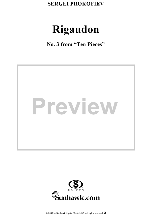 "Rigaudon, No. 3 from "Ten Pieces", Op. 12" Sheet Music by Sergei Prokofiev