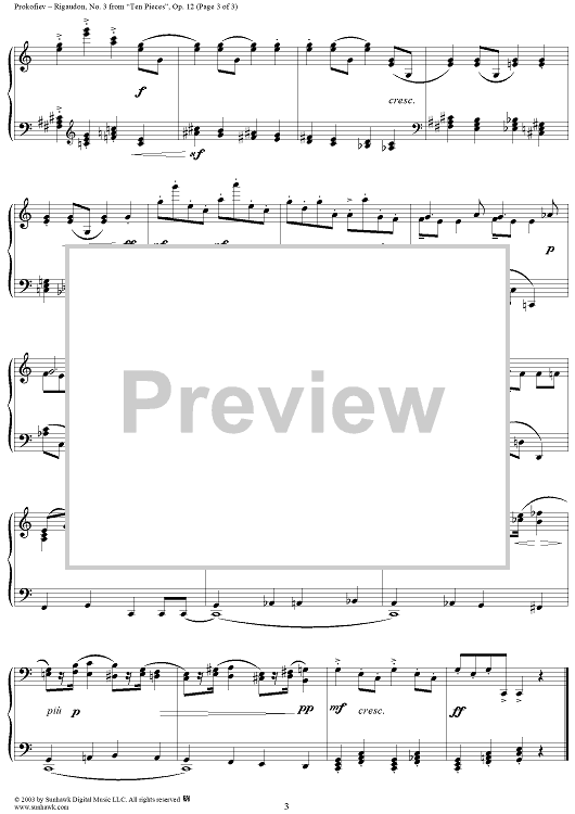Digital Sheet Music for Rigaudon, No. 3 from "Ten Pieces", Op. 12 by Sergei Prokofiev scored for Piano Solo; id:295318