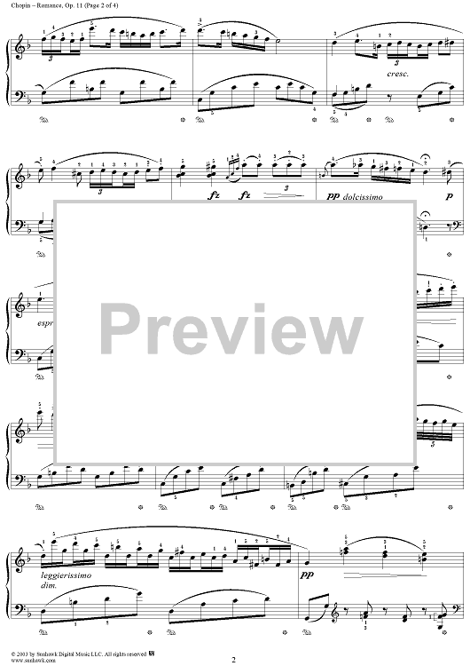 Digital Sheet Music for Romance from "Piano Concerto No. 1 in E Minor," Op. 11 by Frederic Chopin scored for Piano Solo; id:295298