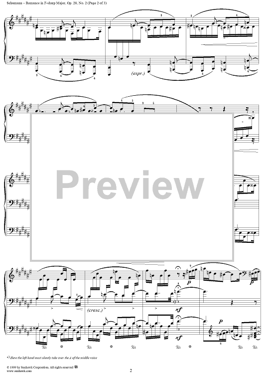 Digital Sheet Music for Romance in F-sharp Major, Op. 28, No. 2 by Robert Schumann scored for Piano Solo; id:118311