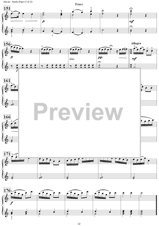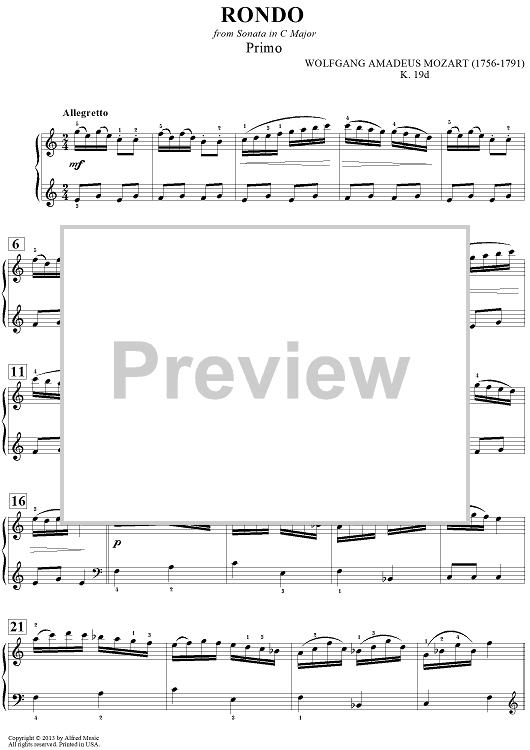 "Rondo from Sonata in C Major" Sheet Music by Wolfgang Amadeus Mozart