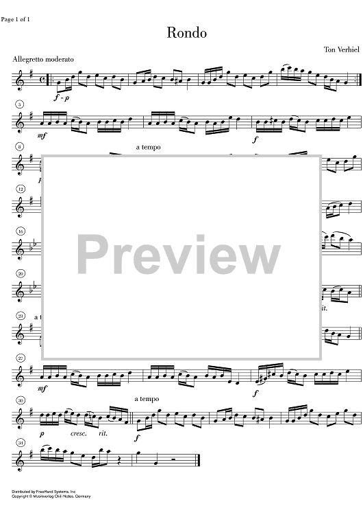Digital Sheet Music for Rondo by , Ton Verhiel scored for Saxophone; id:333705