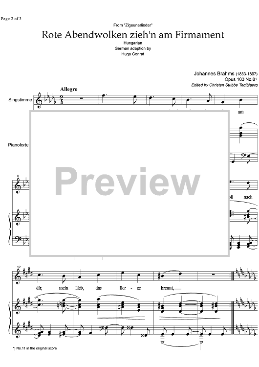 Digital Sheet Music for Rote Abendwolken zieh'n am Firmament Op.103 No. 8 by , Johannes Brahms scored for Soprano or Tenor/Piano; id:334677