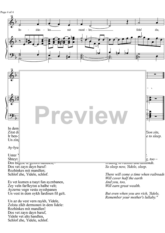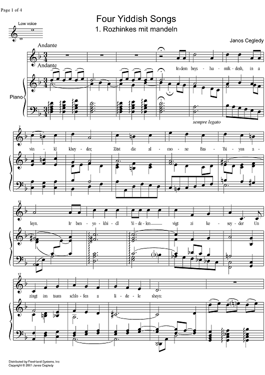 Digital Sheet Music for Rozhinkes mit Mandeln by , Janos Cegledy scored for Alto or Bass/Piano; id:337094