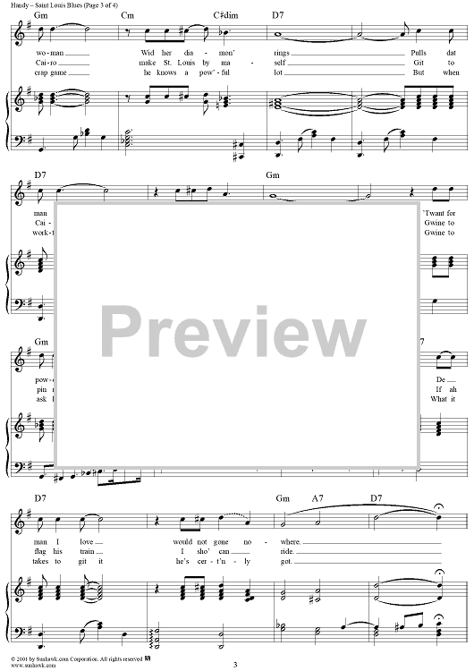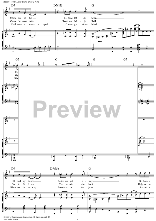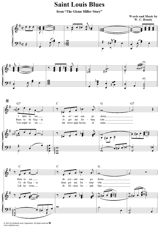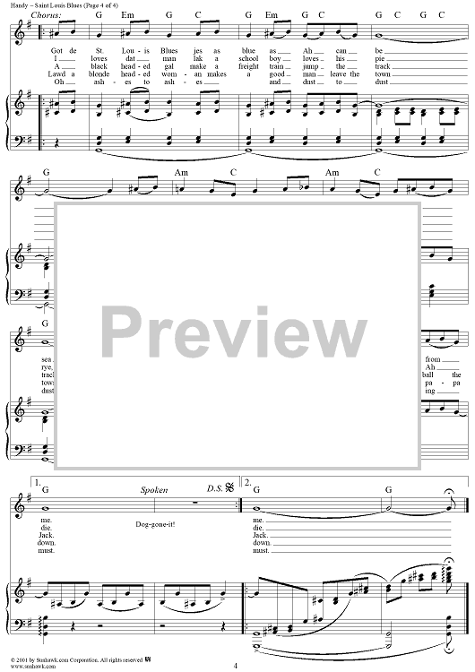 Digital Sheet Music for Saint Louis Blues by W. C. Handy scored for Piano/Vocal/Chords; id:267194